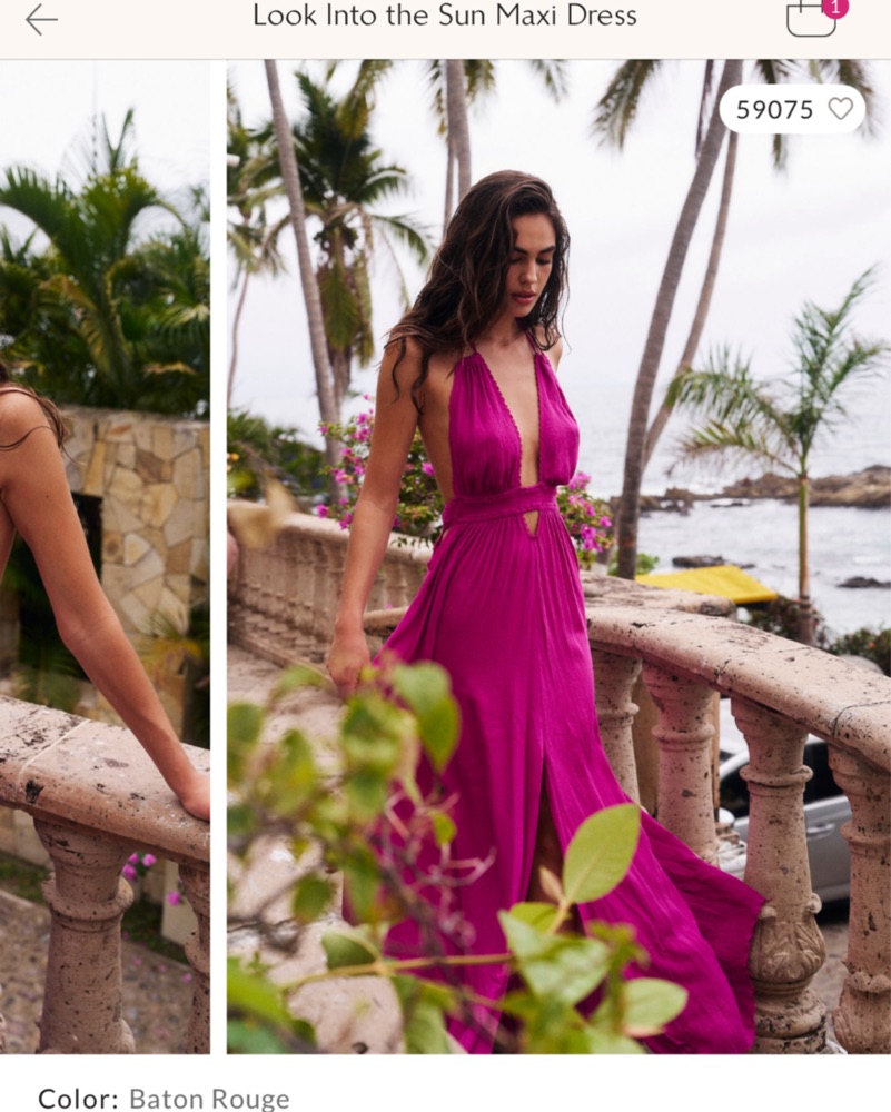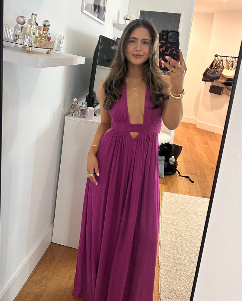 Stunning maxi dress - perfect for vacation, summer, or evening event. Material is soo comfy. Open back and ties behind the neck so it’s adjustable!