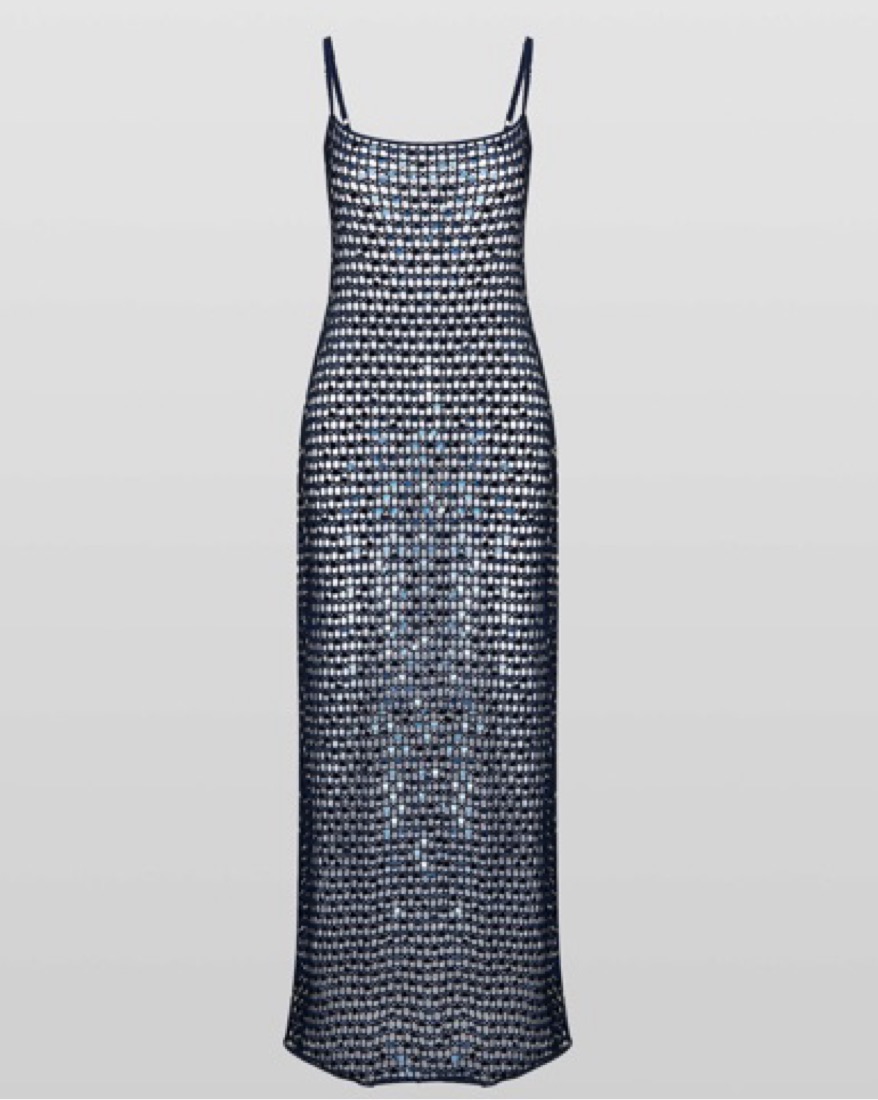 A showstopping maxi in a bewitching shade of midnight blue, the glittering Lupita dress is beautifully crocheted from lurex and finished with sequins made to catch the sun as you move. With a perfectly simple, 90s-inspired silhouette. Long, perfect beach cover up. Size S/M