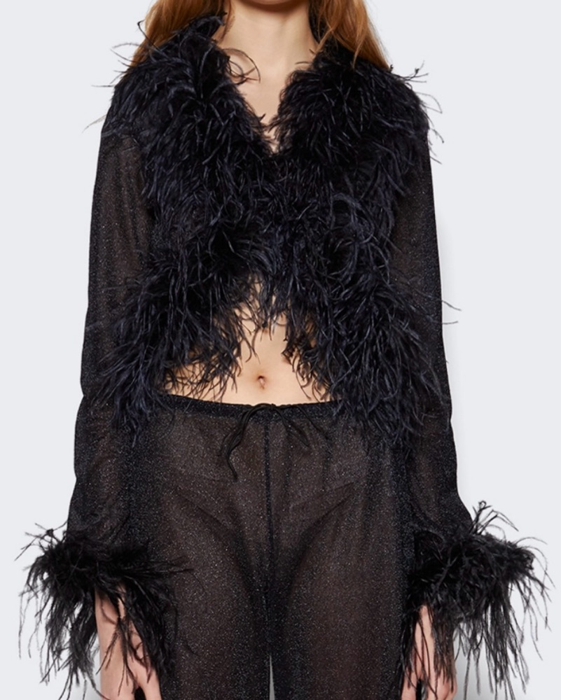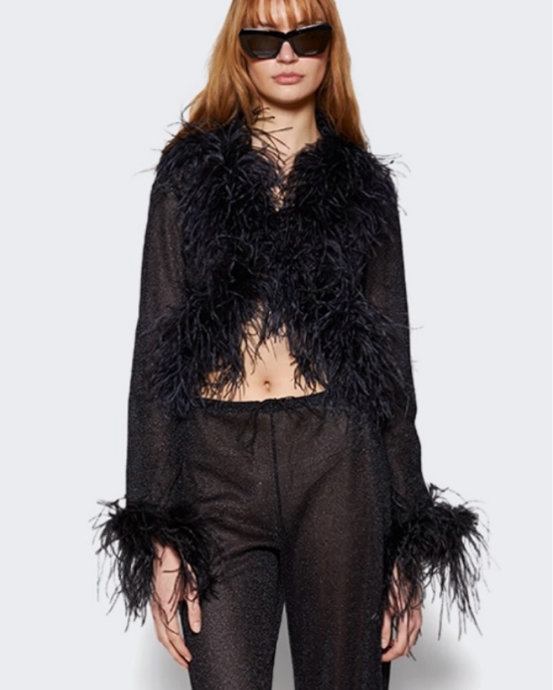 Oseree Lumiere Ostrich Feather-trim Top by Oseree - Pickle