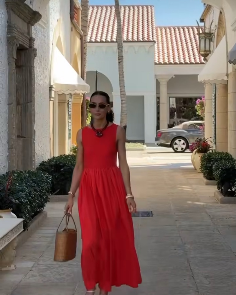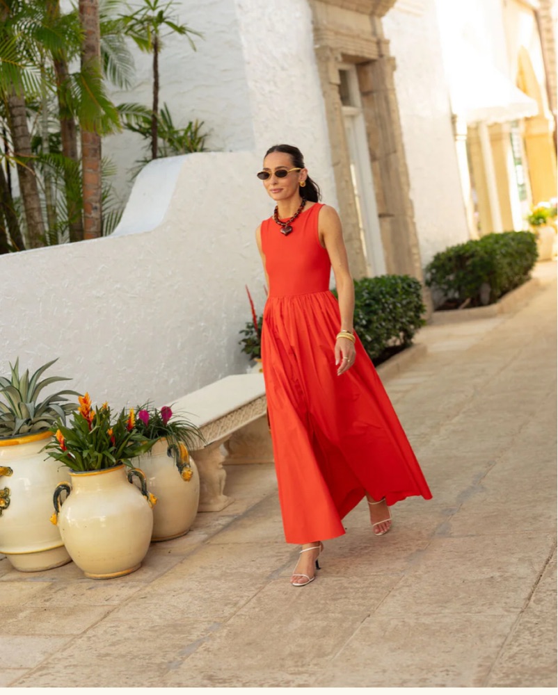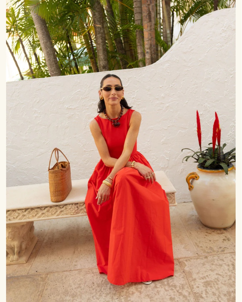 This vibrant red maxi dress is perfect for a summer evening out. The flowing silhouette and bold color create a sophisticated and chic look that is sure to turn heads. Lamaregold sue dress sold out in this size and perfect for MDW or 4th of July