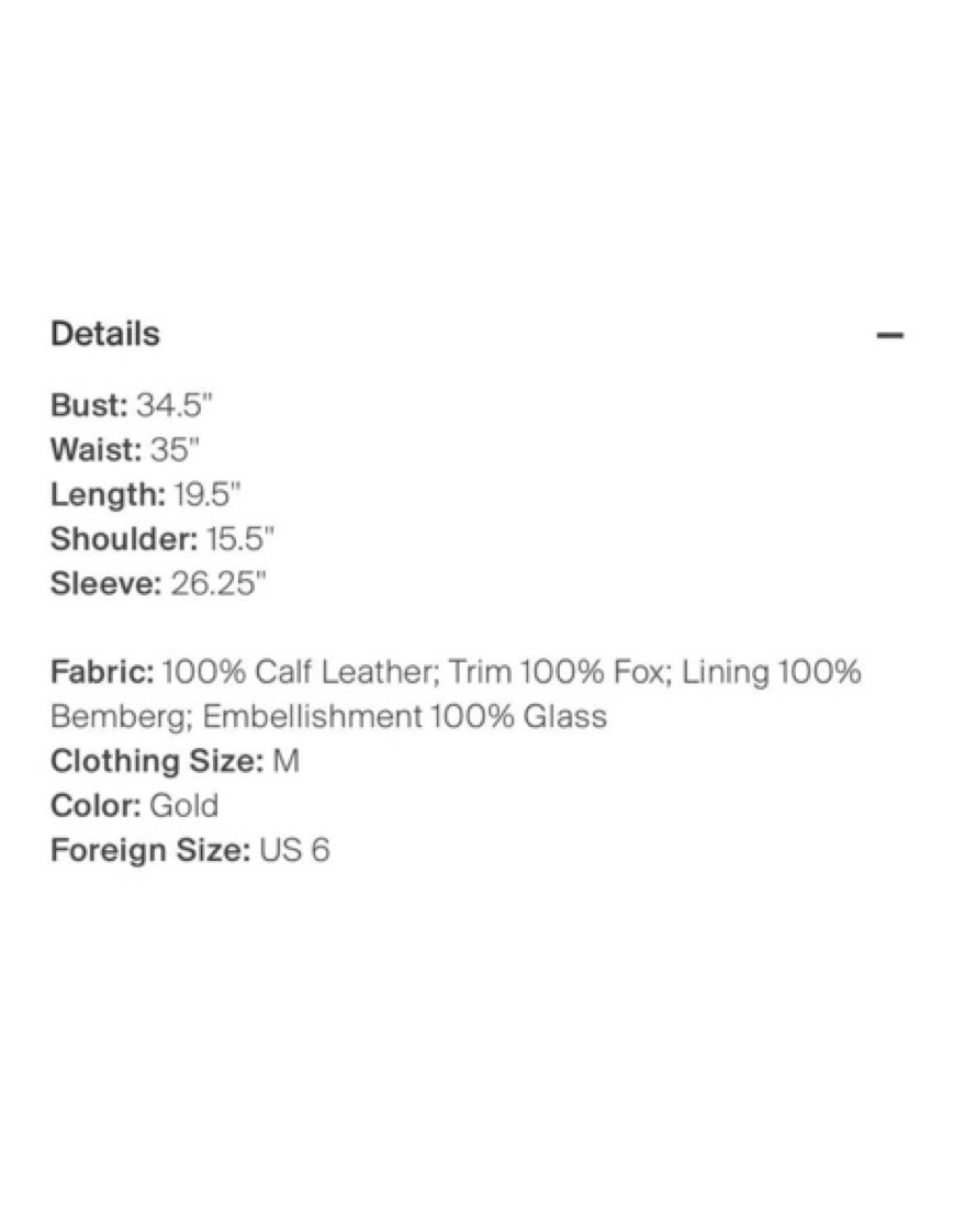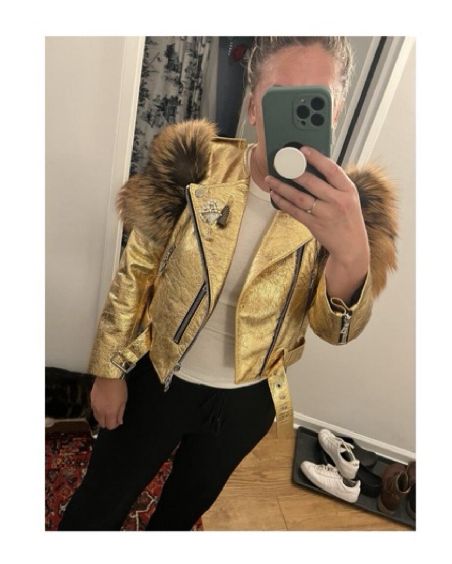 Marc Jacobs Fox Fur Leather Jacket Gold