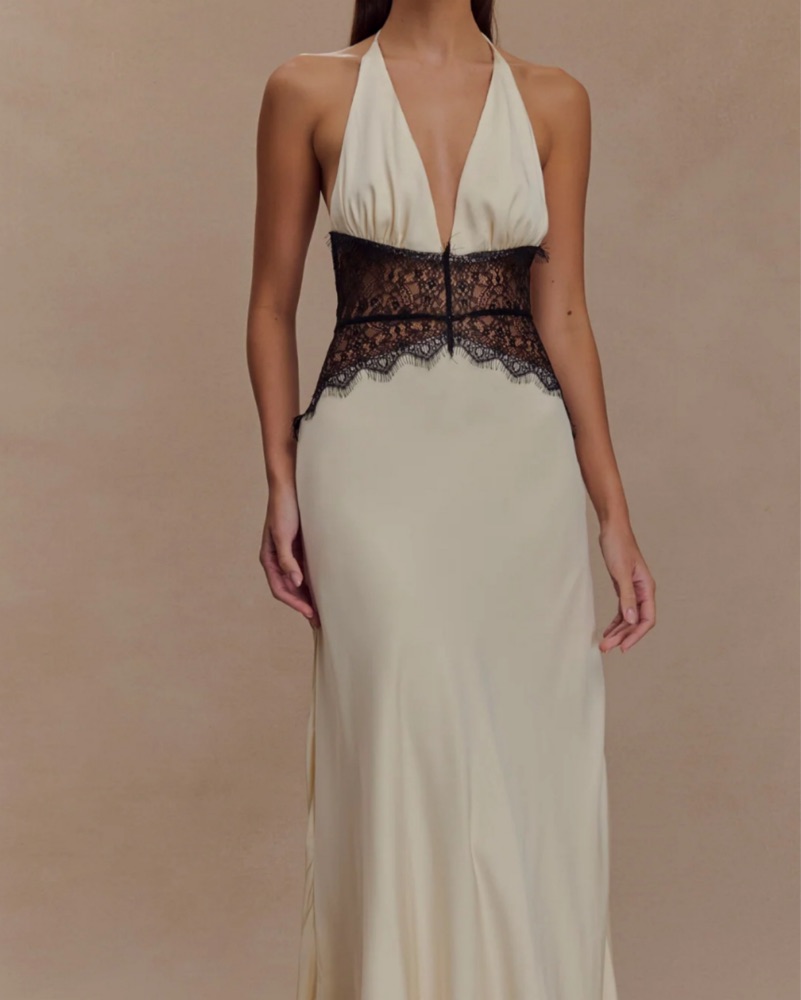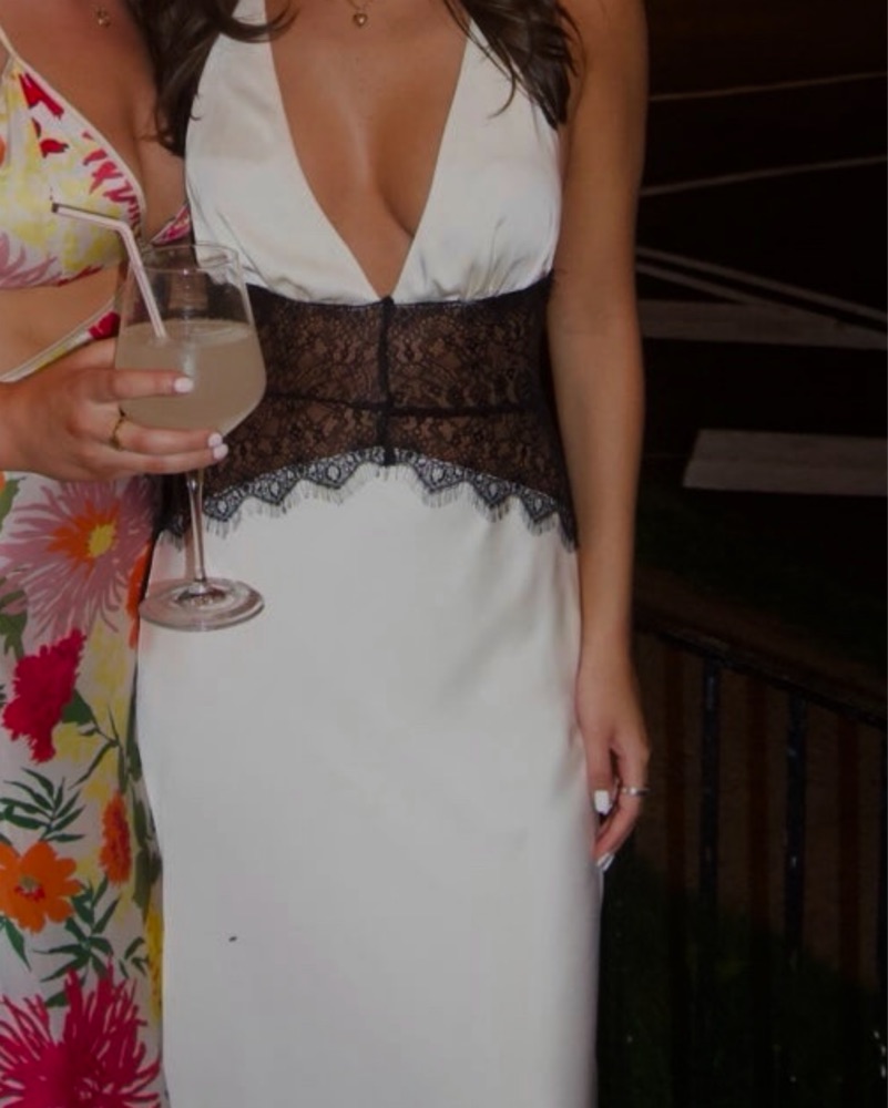 Meshki Dinah lace and satin maxi dress, off white with black lace. Most gorgeous dress ever, size small would say fits xs/s