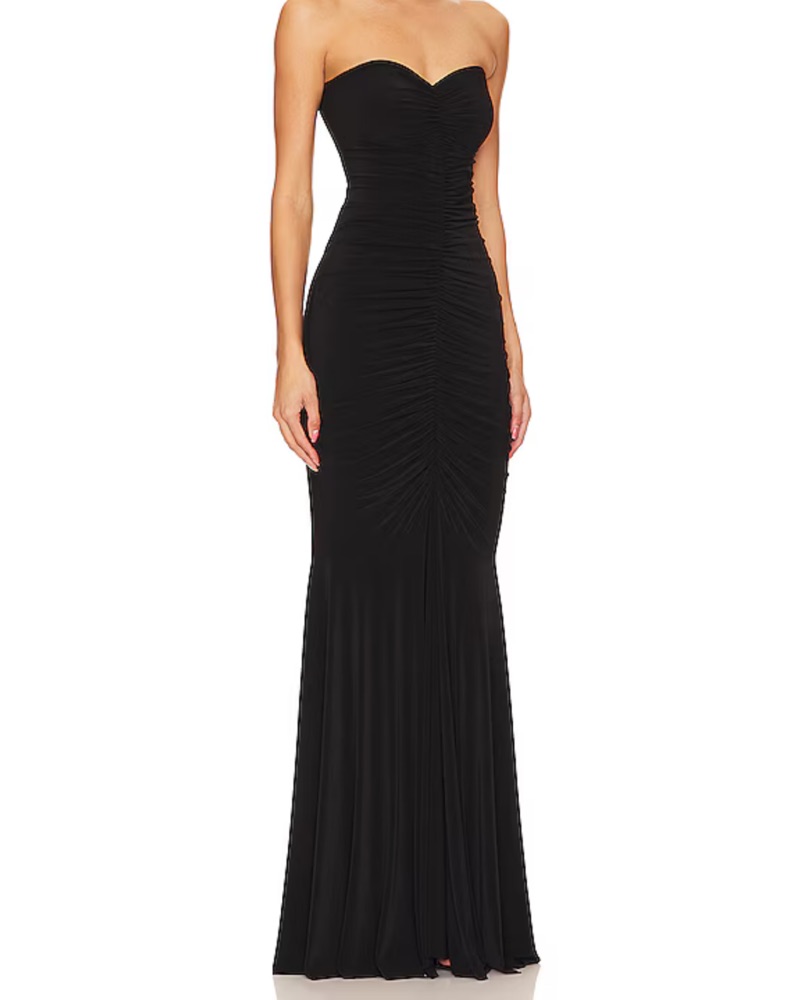Strapless Shirred Front Fishtail Gown