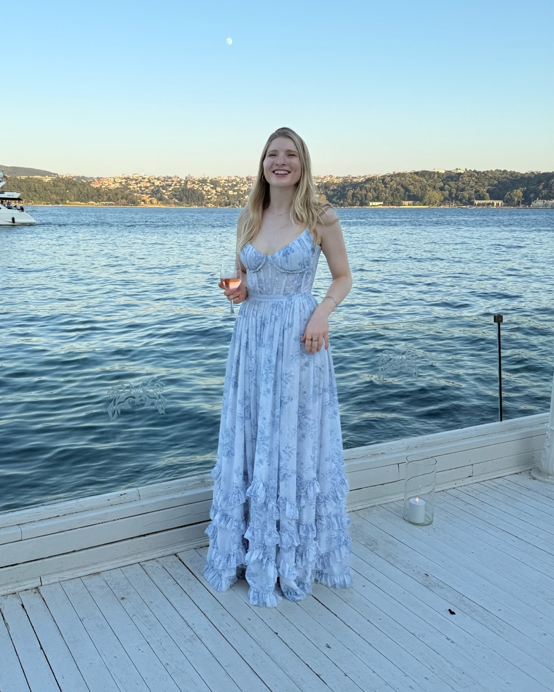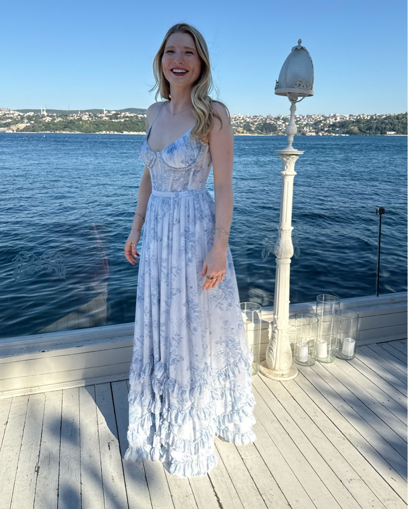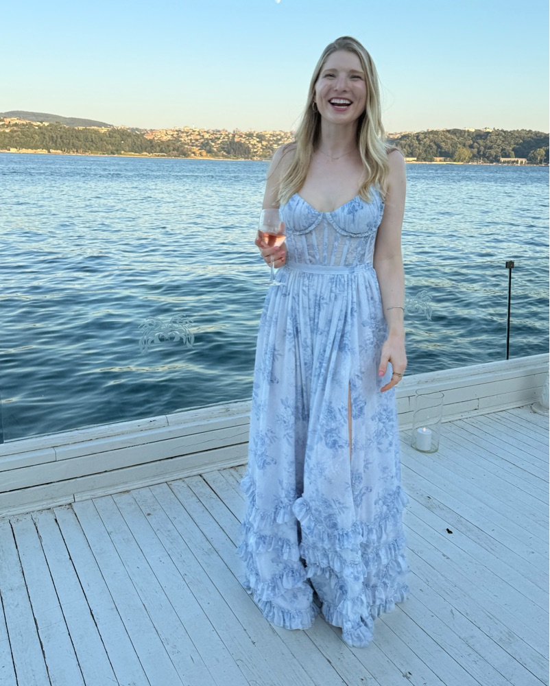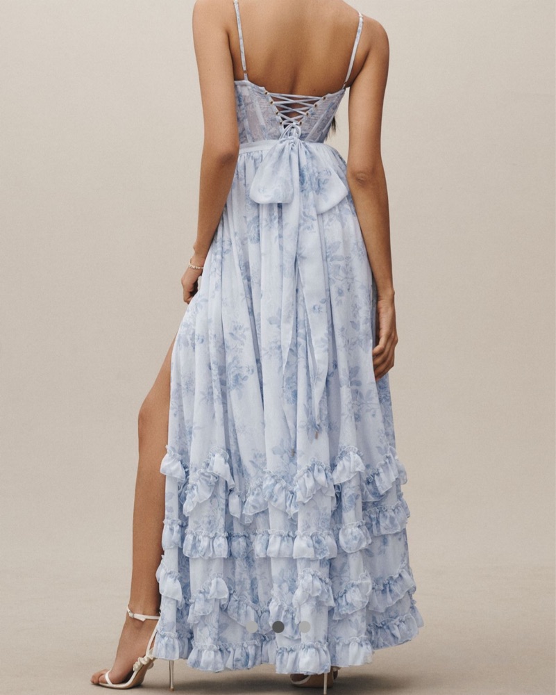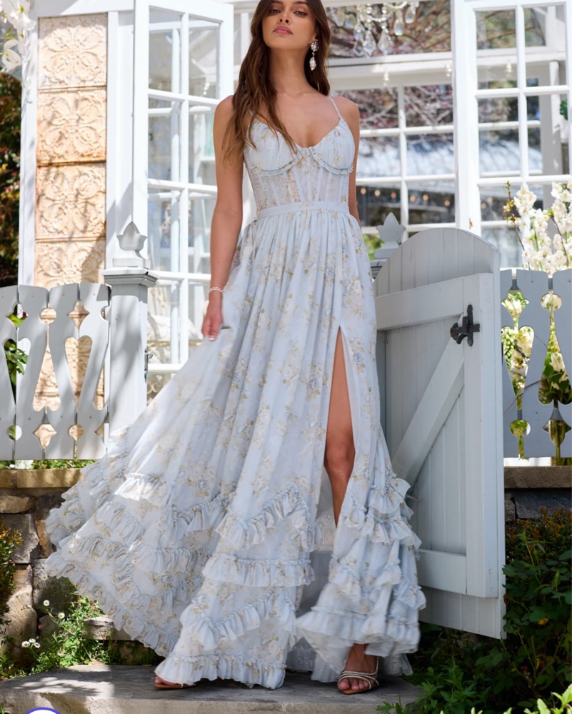 Ruffled Gown. Note the dress runs long! I’m 5’7”/5’8” and needed 4 inch heels for it to not drag