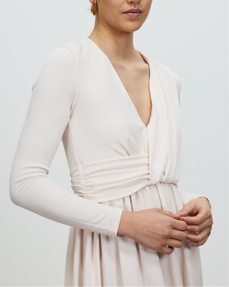 “Birnam” dress by Acler. Light pink / off white color. Really soft, comfortable, and flattering. Nice for a bridal or baby shower!