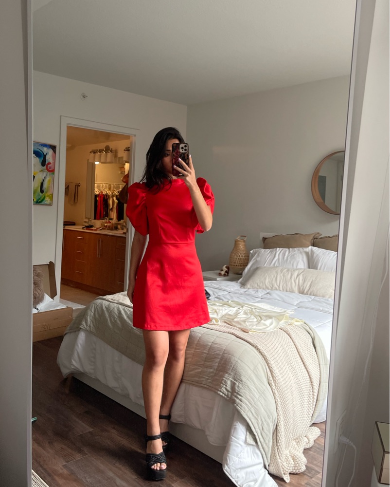 Beautiful Red Statement Puff Sleeve Mini