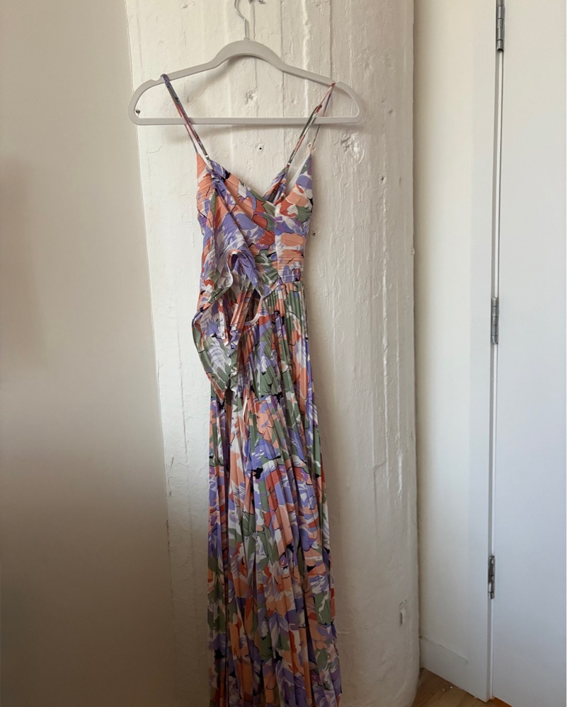 XS ASTR the Label “Blythe Dress” in the color Coral Multi from Revolve. Worn once to a wedding. Dress is in great condition. For reference, I am 5’2 and wearing flats.