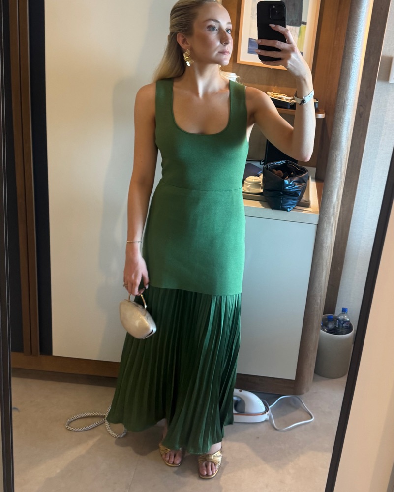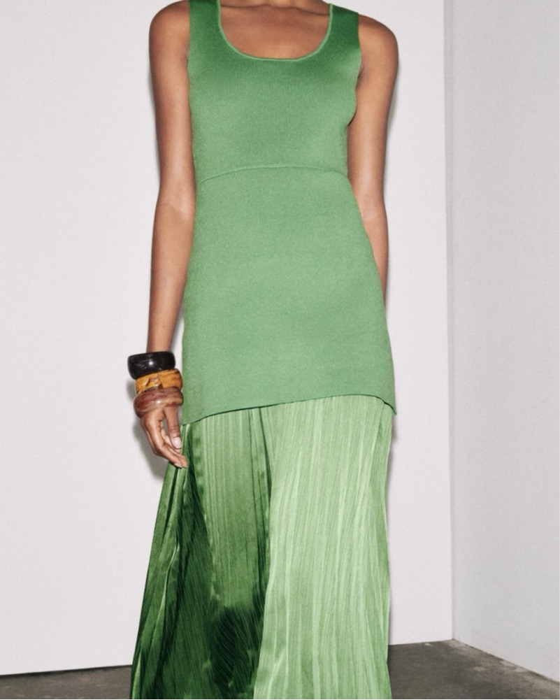 Pleated Knitt Combination Dress - Green by Zara - Pickle