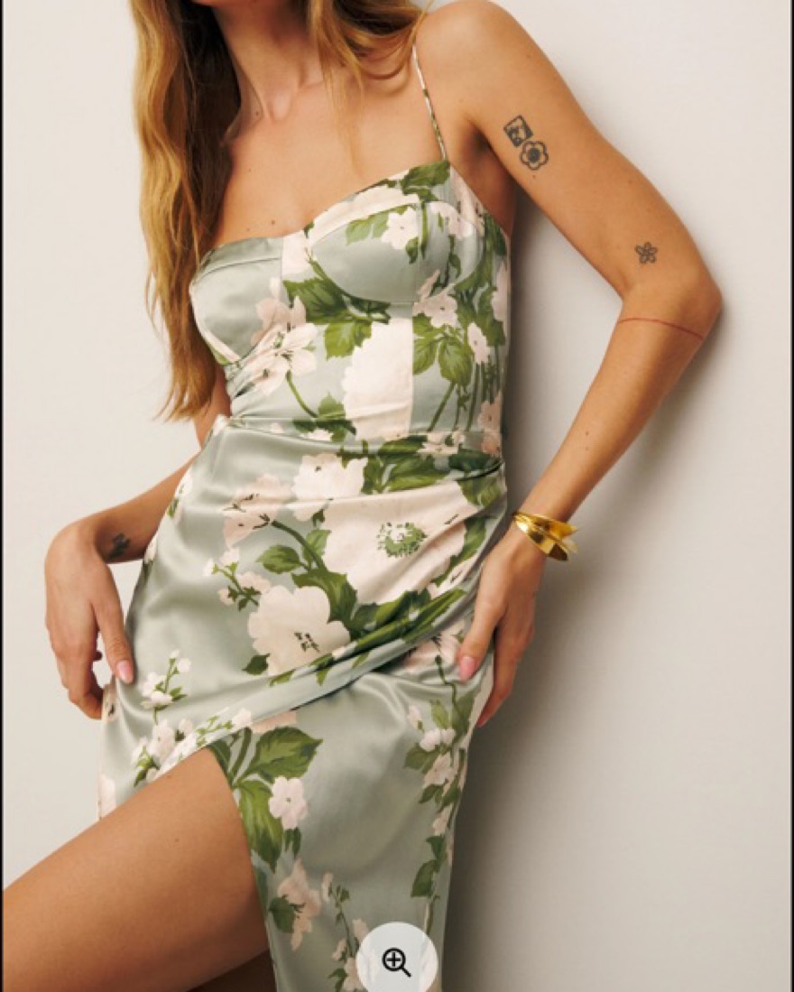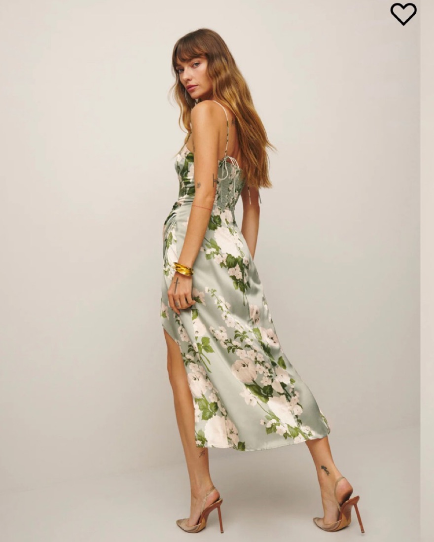 Reformation new green sill dress floral with slit