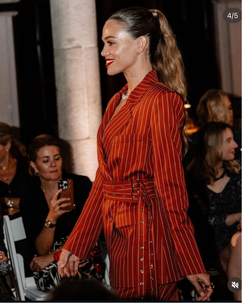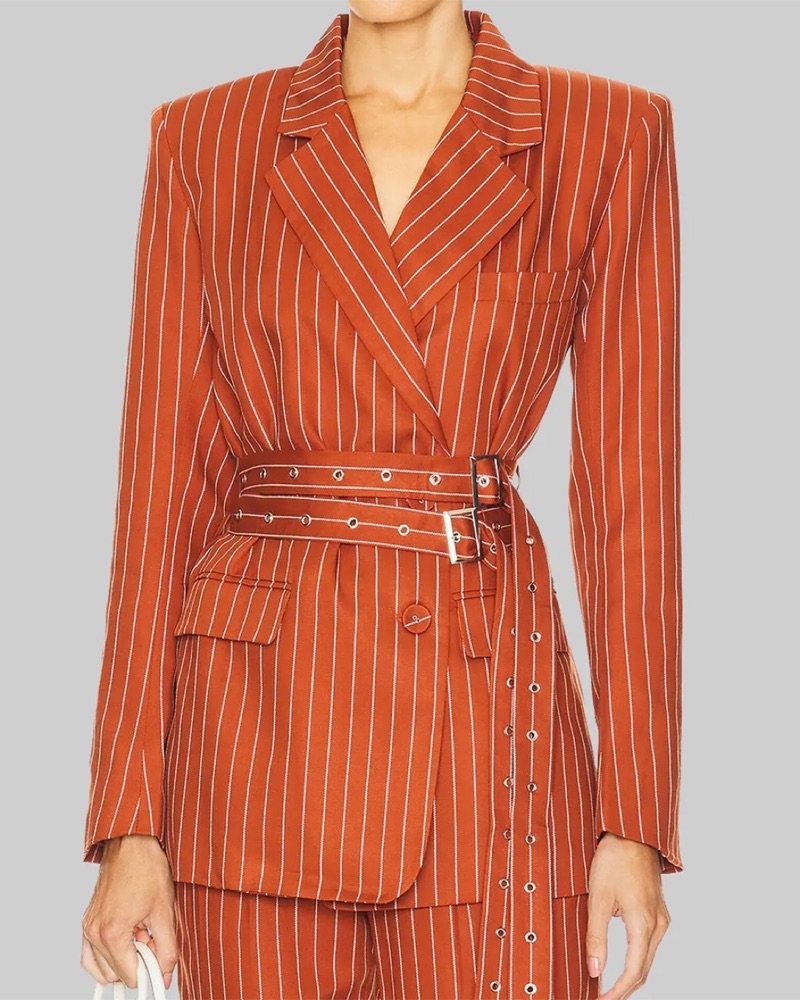 Stunning nonchalant pinstriped suit. The colour looks closer to red in the far but is between red and orange I would say. It’s a showstopper, perfect for fashion events or carpets