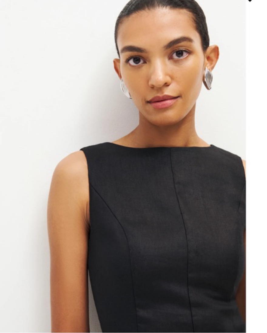 Linen light boat neck cut. Size 4 soooo cute rlly flattering.