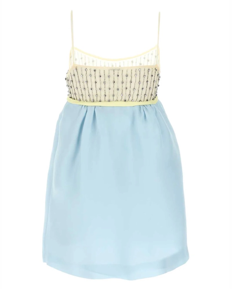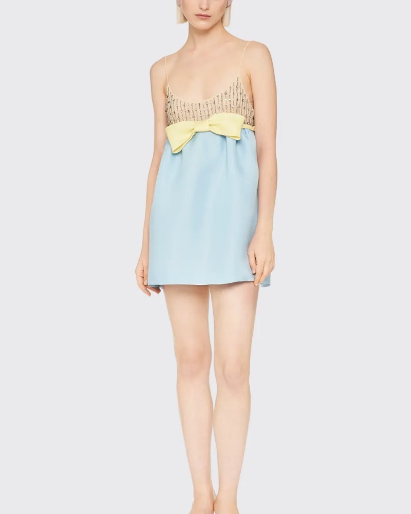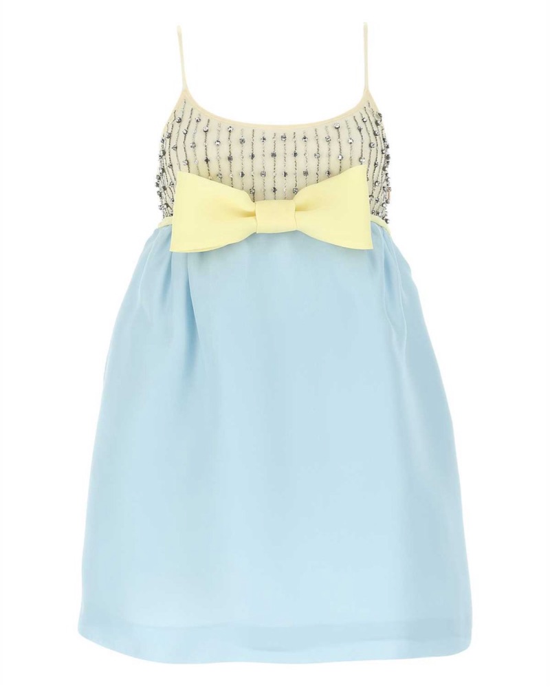 Miu Miu Bow Embellished Mini Dress by Miu Miu - Pickle