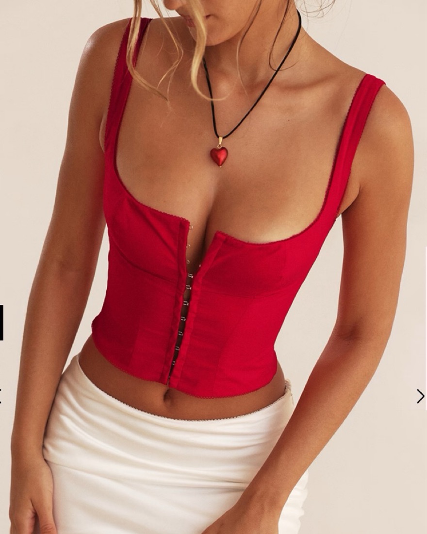 Cheery Red poplin square neck corset top! Fits so beautifully and snatches you in! Also makes yiur tatas look nice:) The closure are the hooken eyes on the center front so you can adjust what you want open for your desire look!