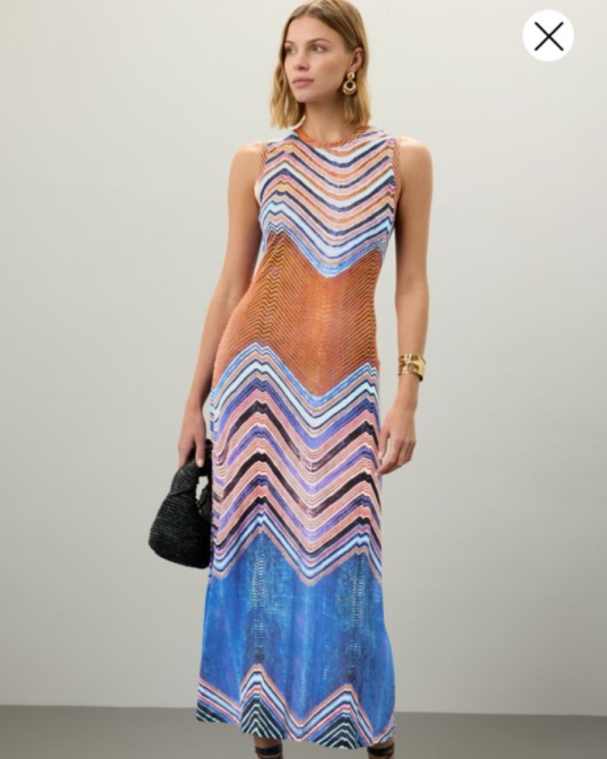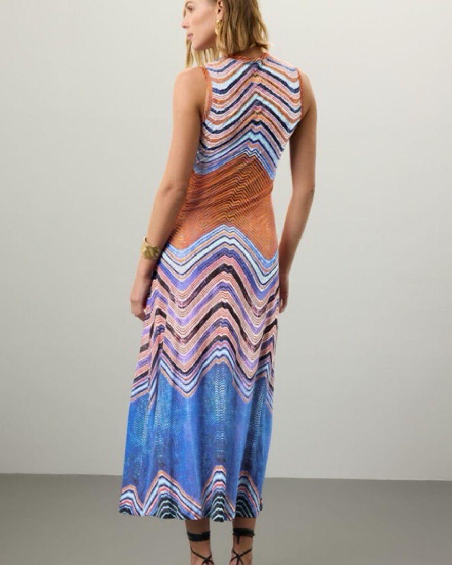 Playful bohemian vibe, this sleeveless maxi features a fun wavy patternš§”šPullover - can be minimalist or elevated with heels - 100% lyocell so casual material