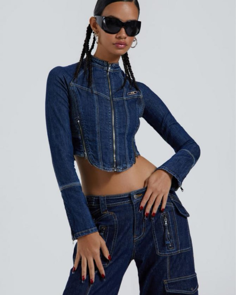Jaded London Hudson indigo denim corset jacket xs. Jeans available too. Size w/24