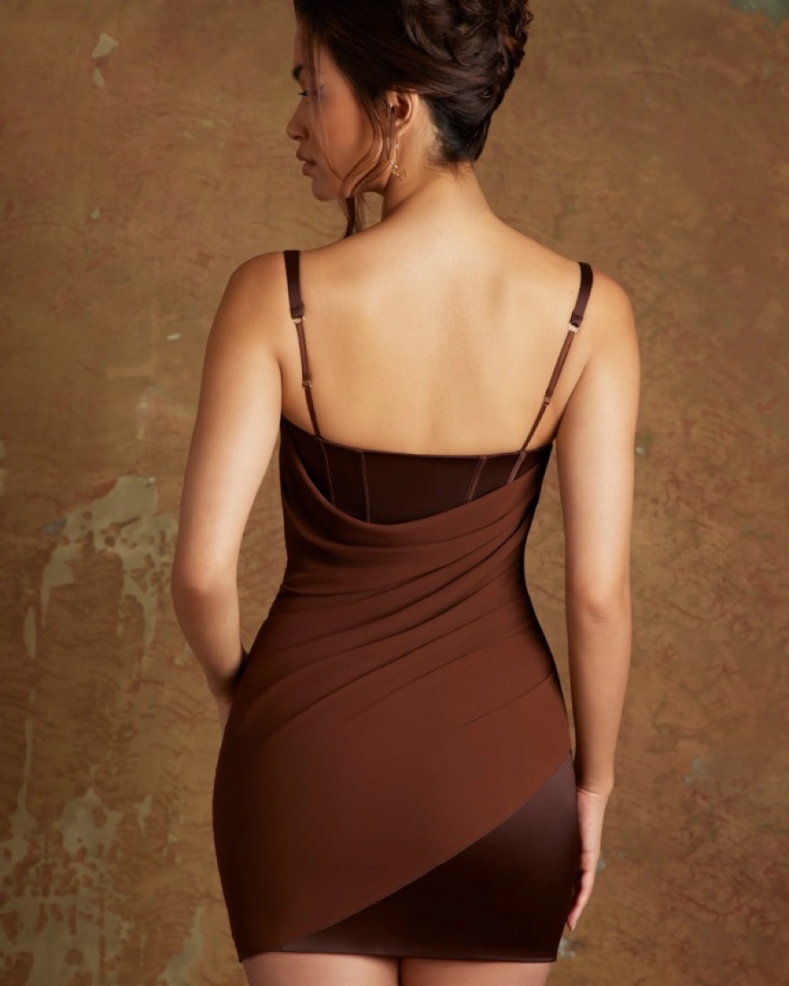 LUNARA Draped Corset Mini Dress in Brown by Oh Polly - Pickle
