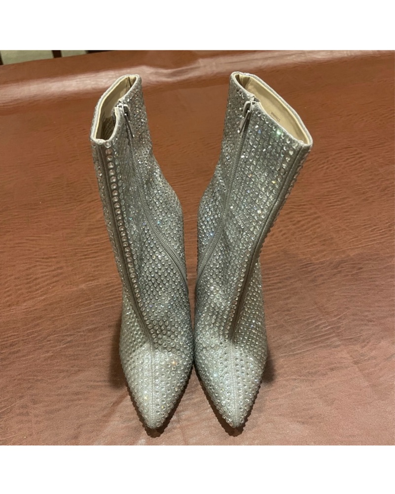 Steve Madden Winnings Rhinestone Heeled Ankle Boots NWOT. Never worn, perfect condition! •4.5” embellished heel •8” zipper at instep •Lightly cushioned insole