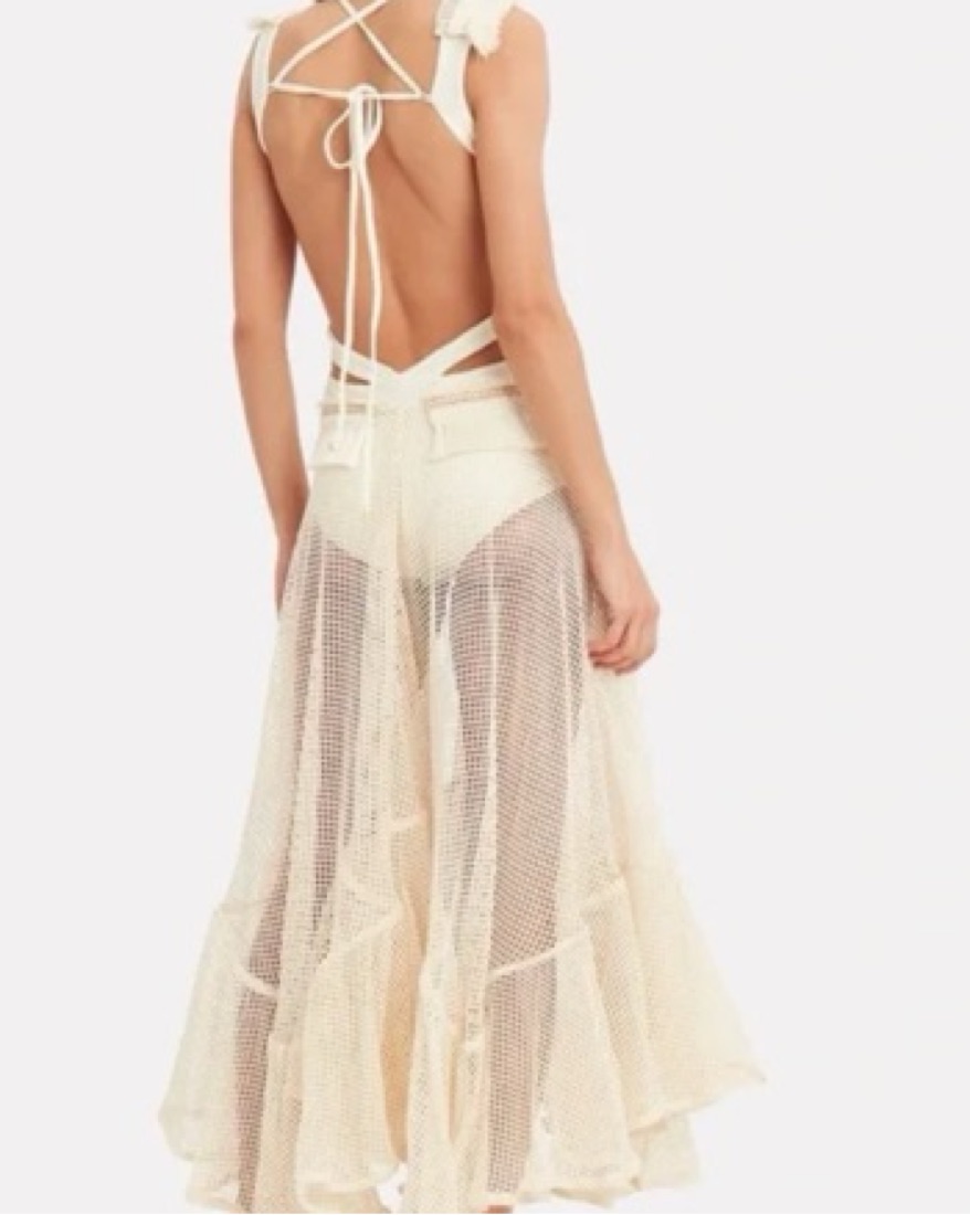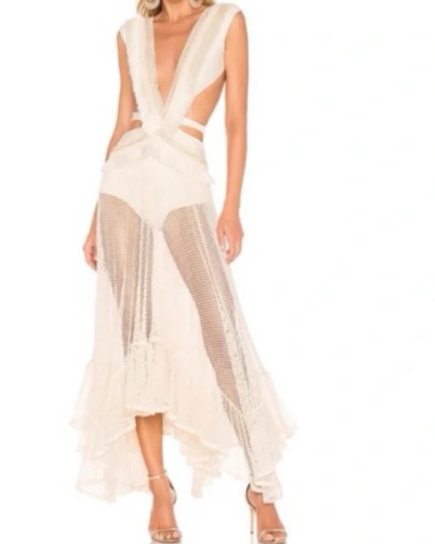 Cutout fringe beach dress *has a small blue stain on the inside where the bodysuit clasps but isn’t noticeable when it’s on*
