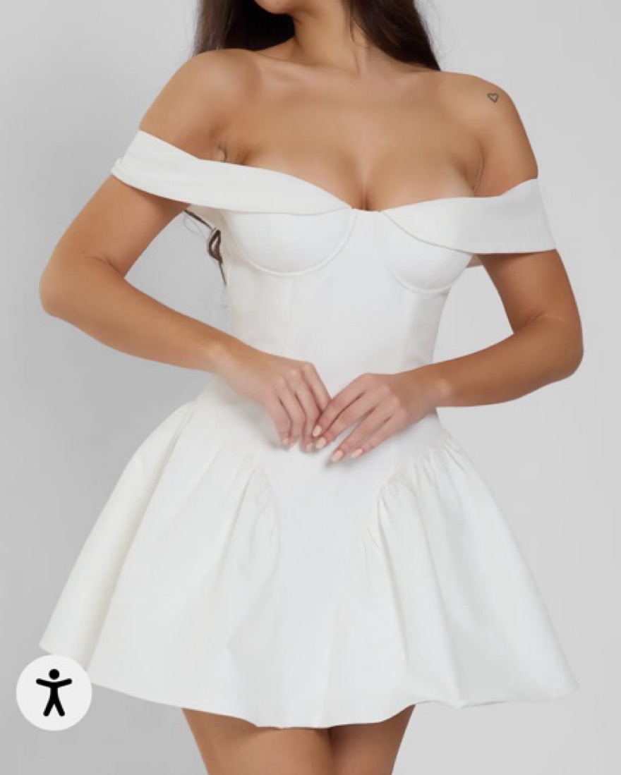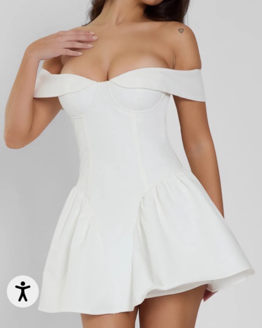 Cut from premium, fused fabric - meet our Bondi Bustier Babydoll Mini Dress. A feminine and flirty off shoulder mini dress with wire bustier cups, cinching waistline and fit and flare babydoll silhouette. The mini length makes it a fun and flirty dress perfect for any summer occasion!