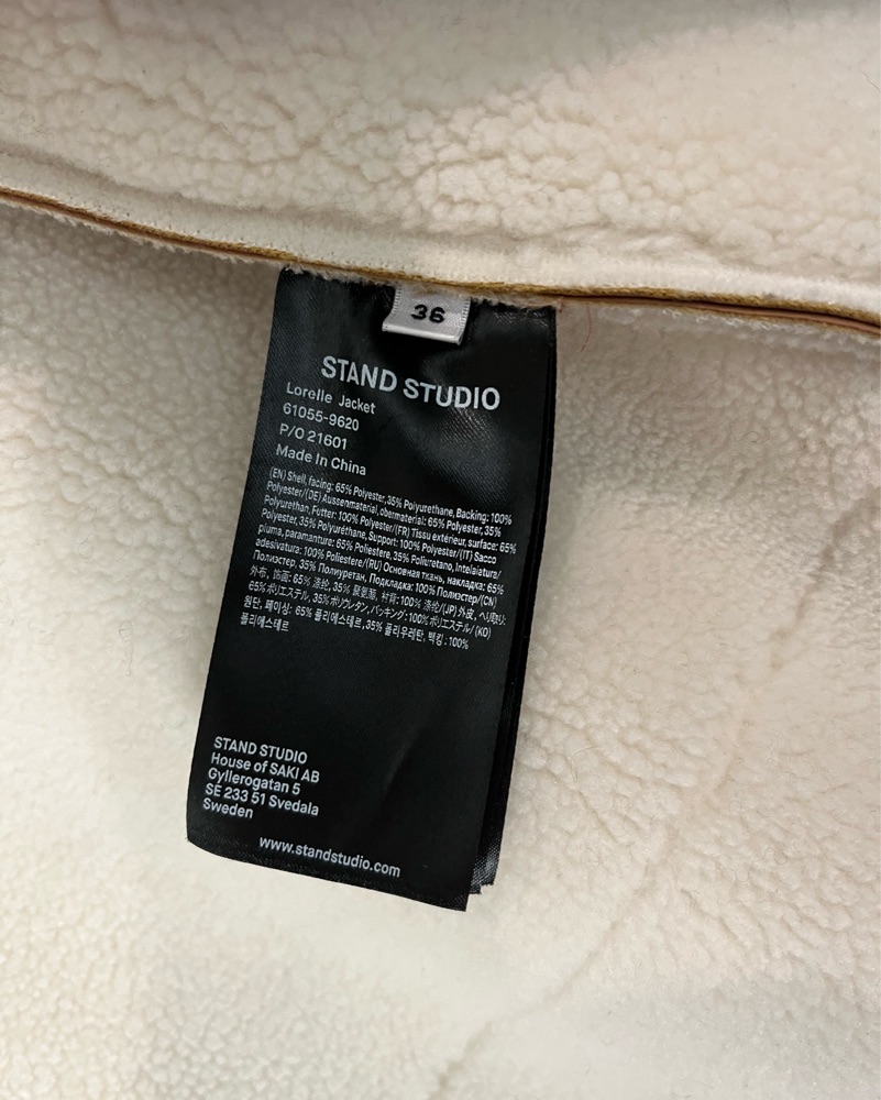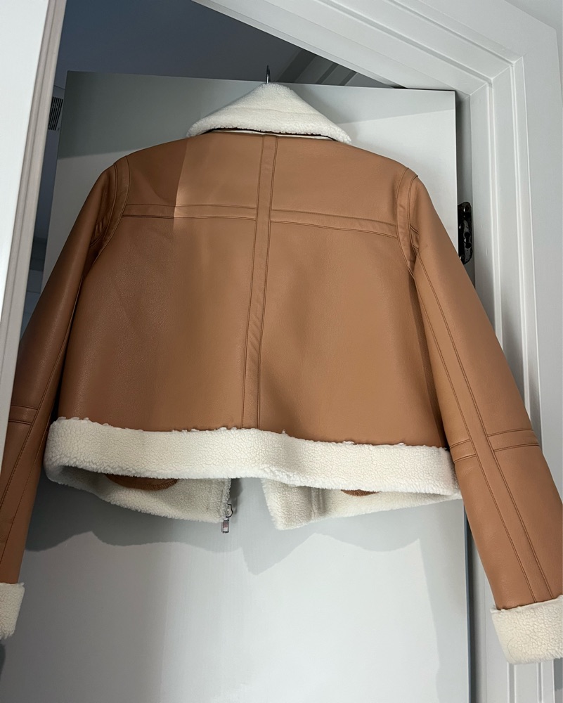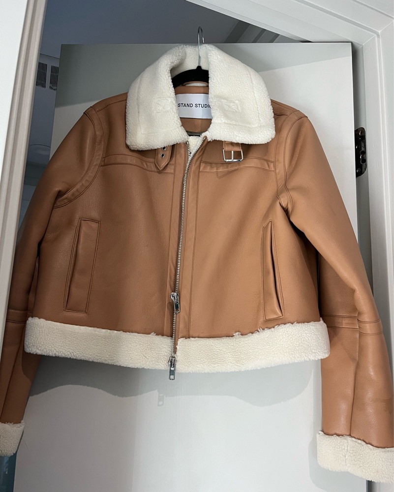 Tan Shearling Leather Jacket by STAND Studio - Pickle