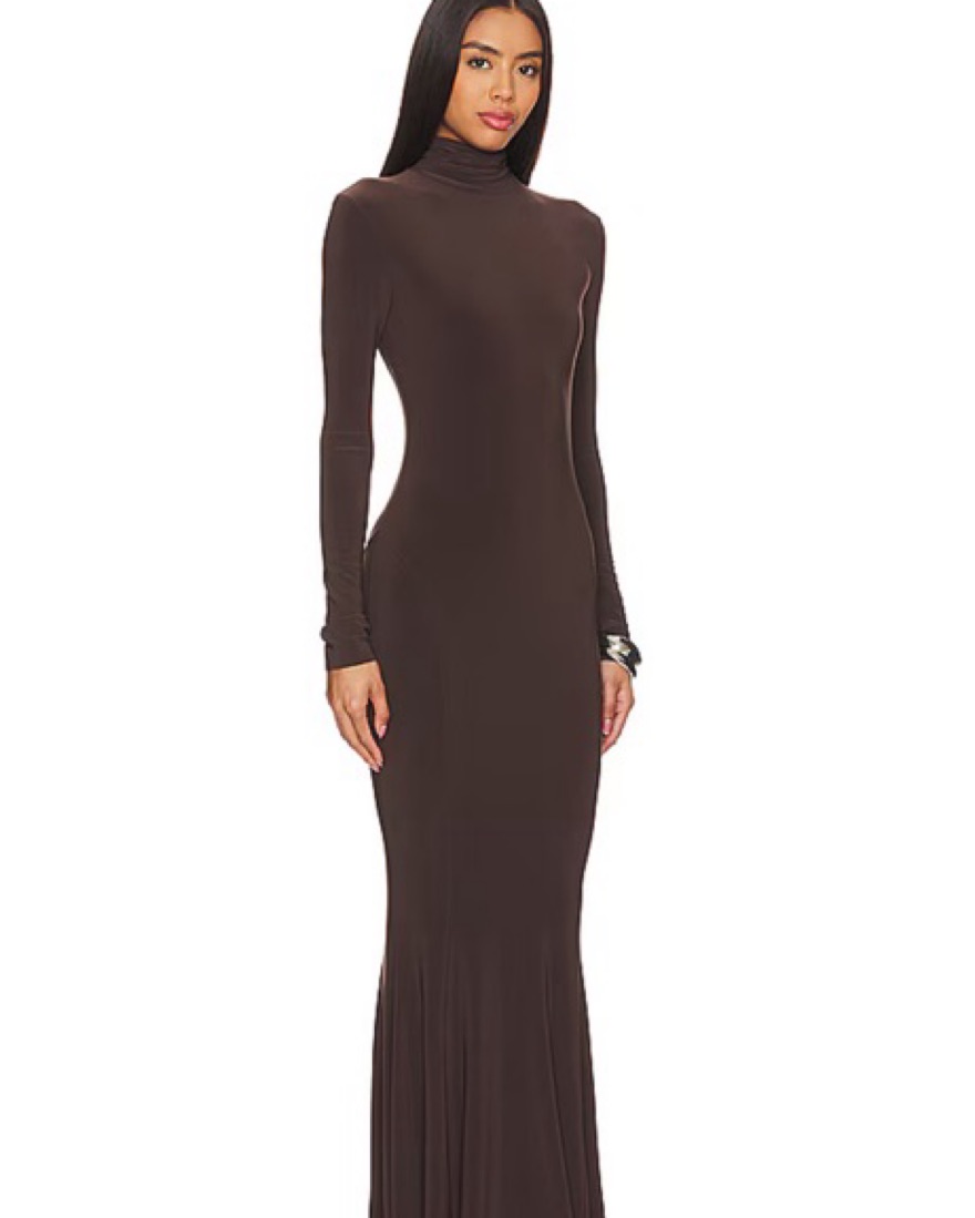Norma Kamali Chocolate Fishtail Gown Size XS