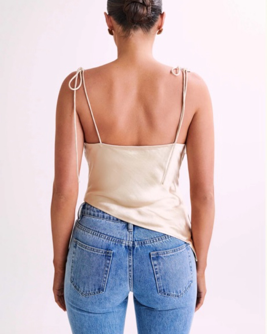 This sophisticated satin camisole is perfect for a night out or a special occasion. The draped neckline and adjustable straps create a flattering and comfortable fit.