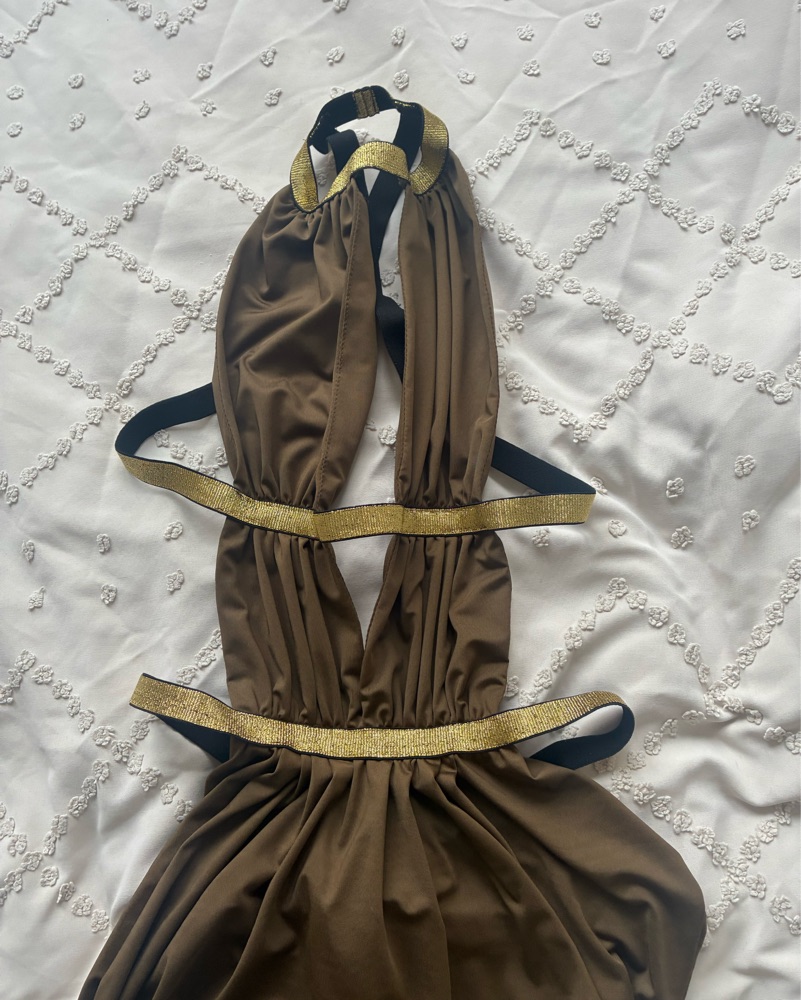 This stunning metallic maxi dress exudes elegance and glamour. It's perfect for a night out or a special occasion.