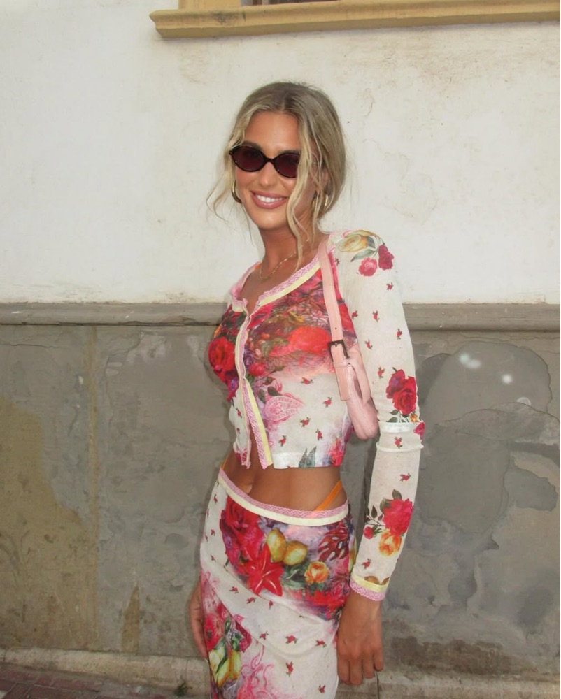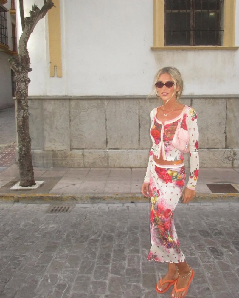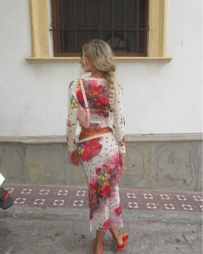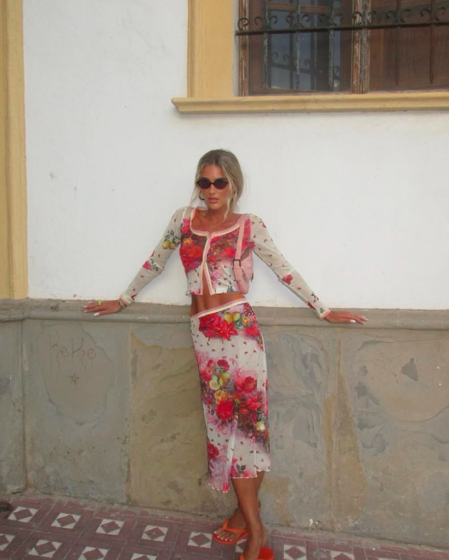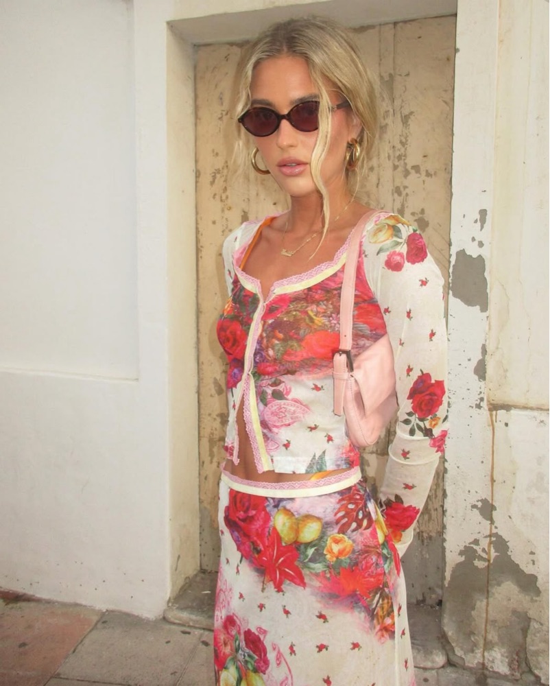 Printed Midi Skirt in Pink & Printed Mesh Cardigan in Pink. Size 4 for both