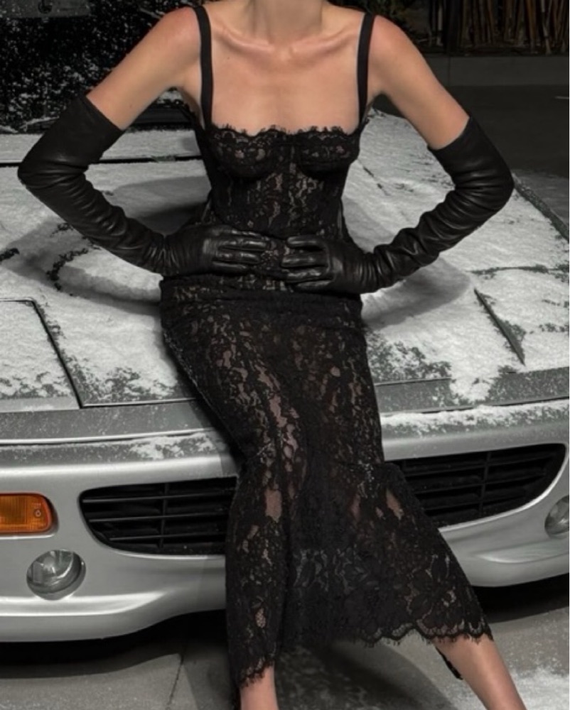 Helsa The Lace Column Dress in Black
