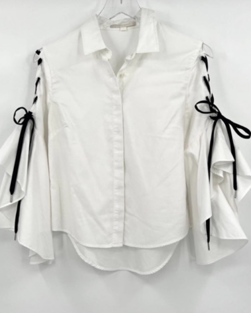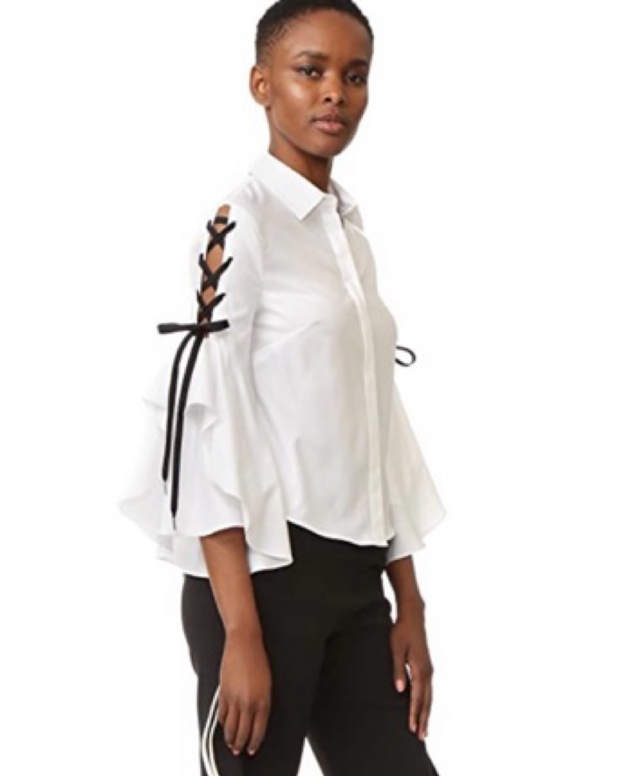 Jonathan Simkhai Lace Up Ruffle Blouse