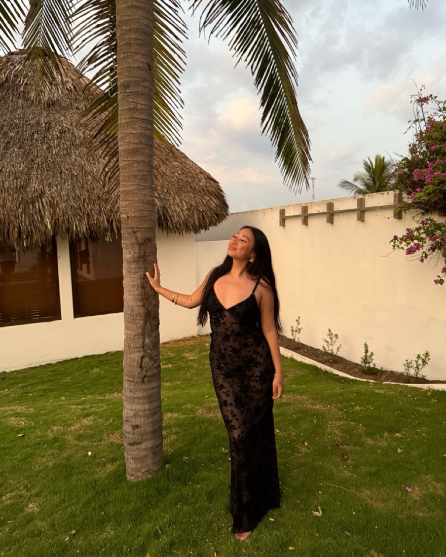 Mesh maxi dress with velvet floral details! Size small but can also fit XS