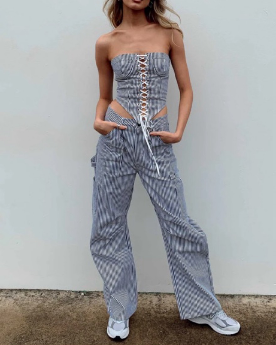 Happy to rent seperately or together! The pants run big on me so I like to fold them over like in the 2nd pic. I’ve had this set for forever so well loved & some self tanner on the top (really just on the inside where no one would see).