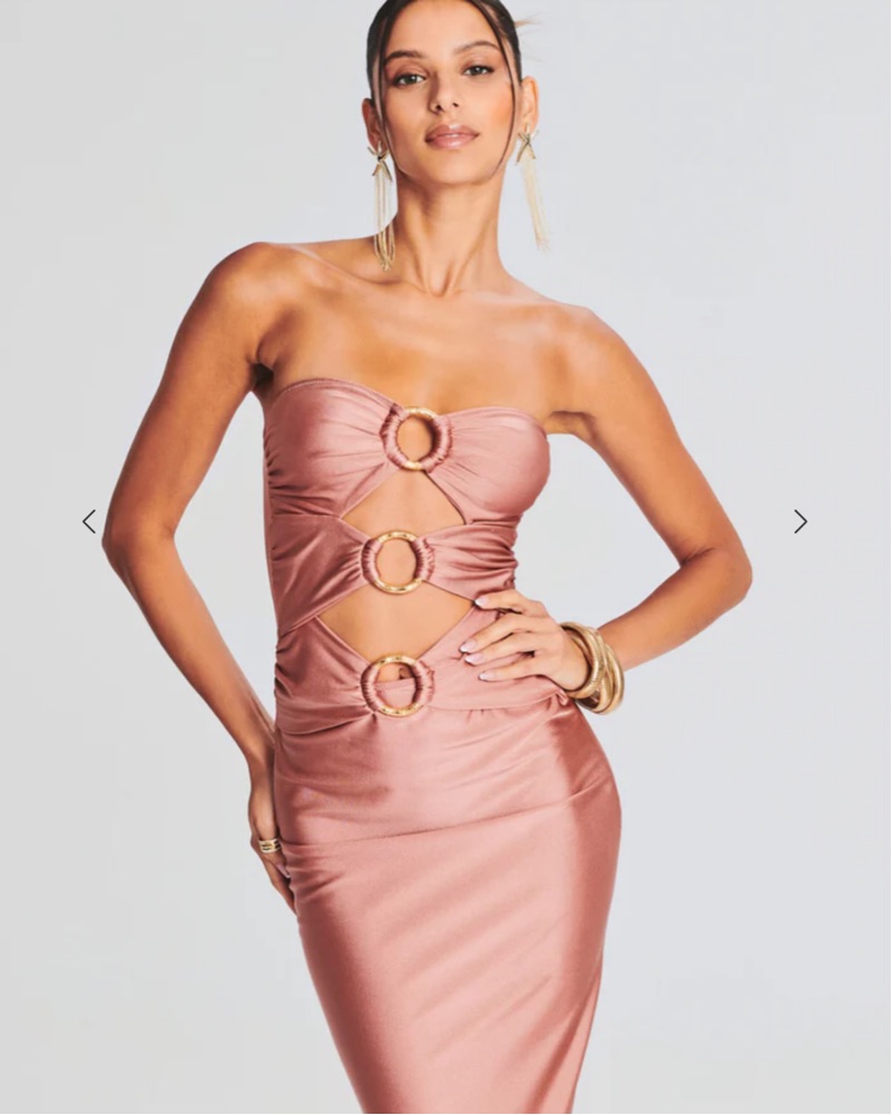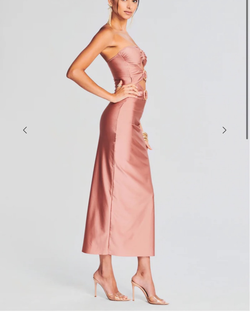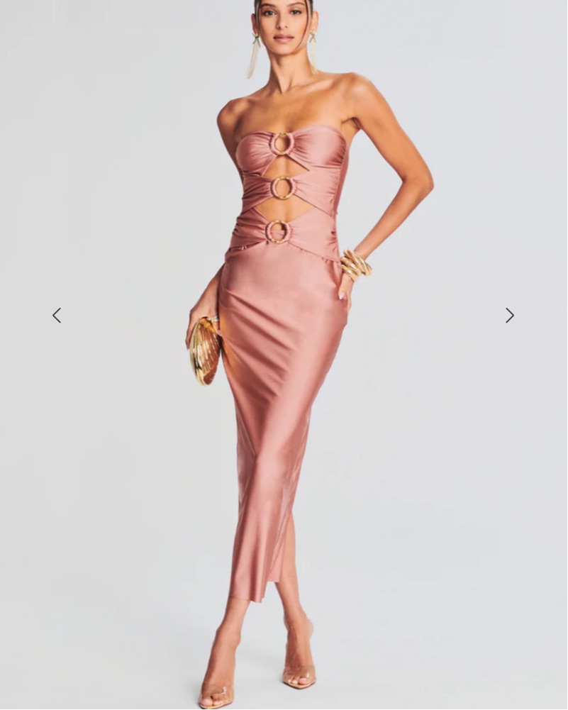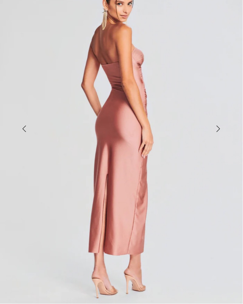 This stunning satin midi dress exudes effortless elegance. It's perfect for a special occasion like a formal event or a night out on the town.
