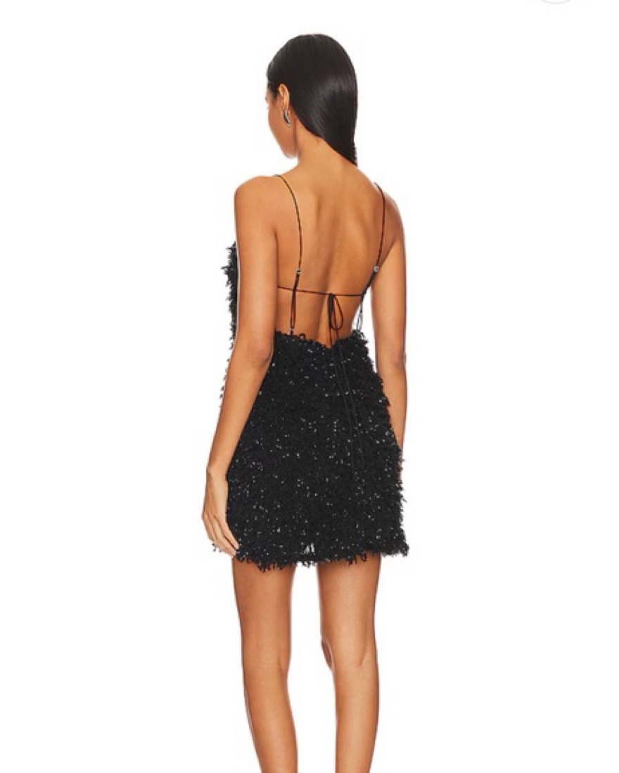 beautiful shaggy/feathery dress with subtle metallic detail throughout. worn once! dry clean only! (but not required if you rent it) model shown is wearing a size small for reference