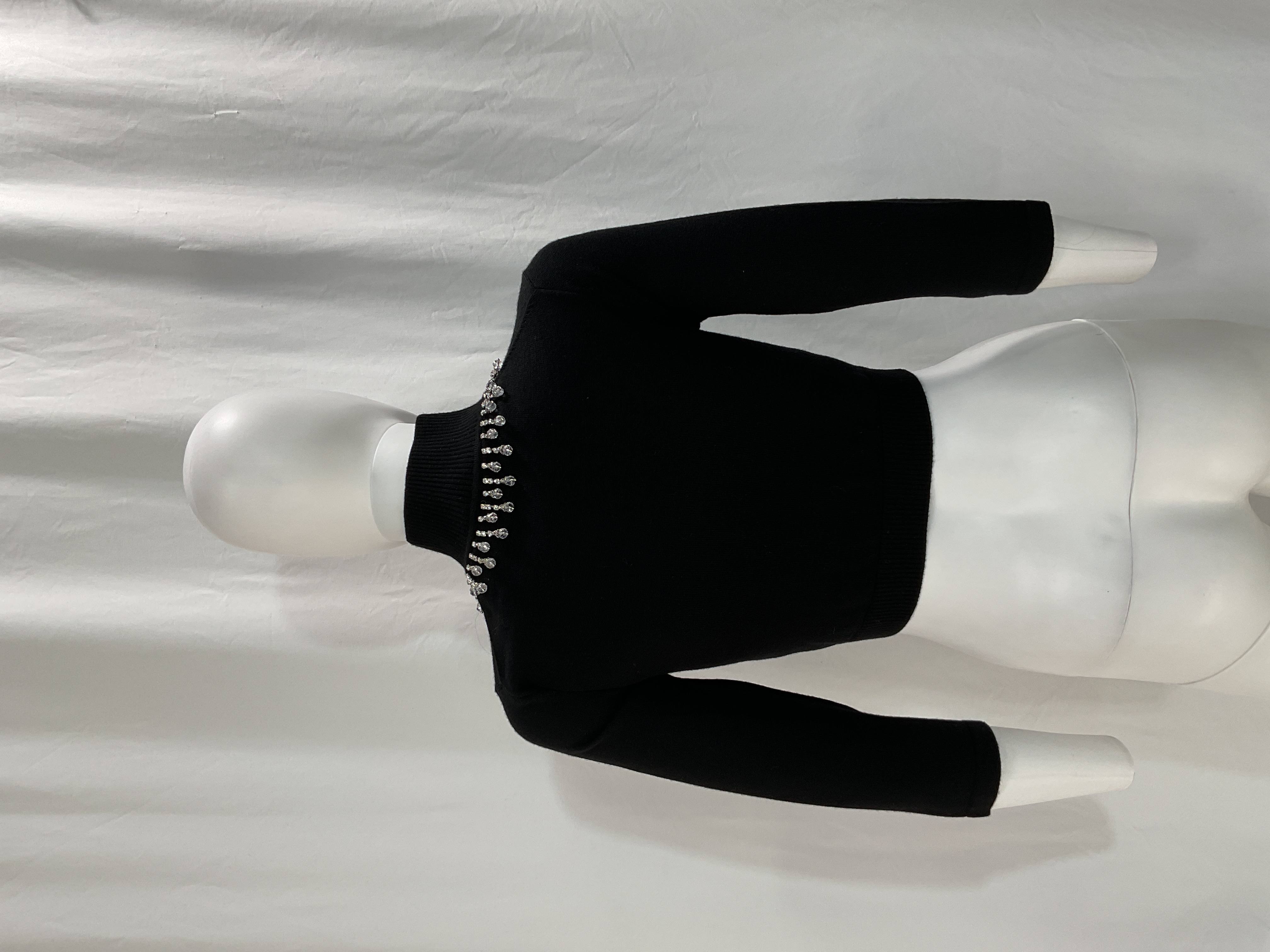 Elevate any look with this sophisticated high-neck crop. The sleek black silhouette pairs perfectly with high-waisted pants or skirts for an effortlessly chic vibe.