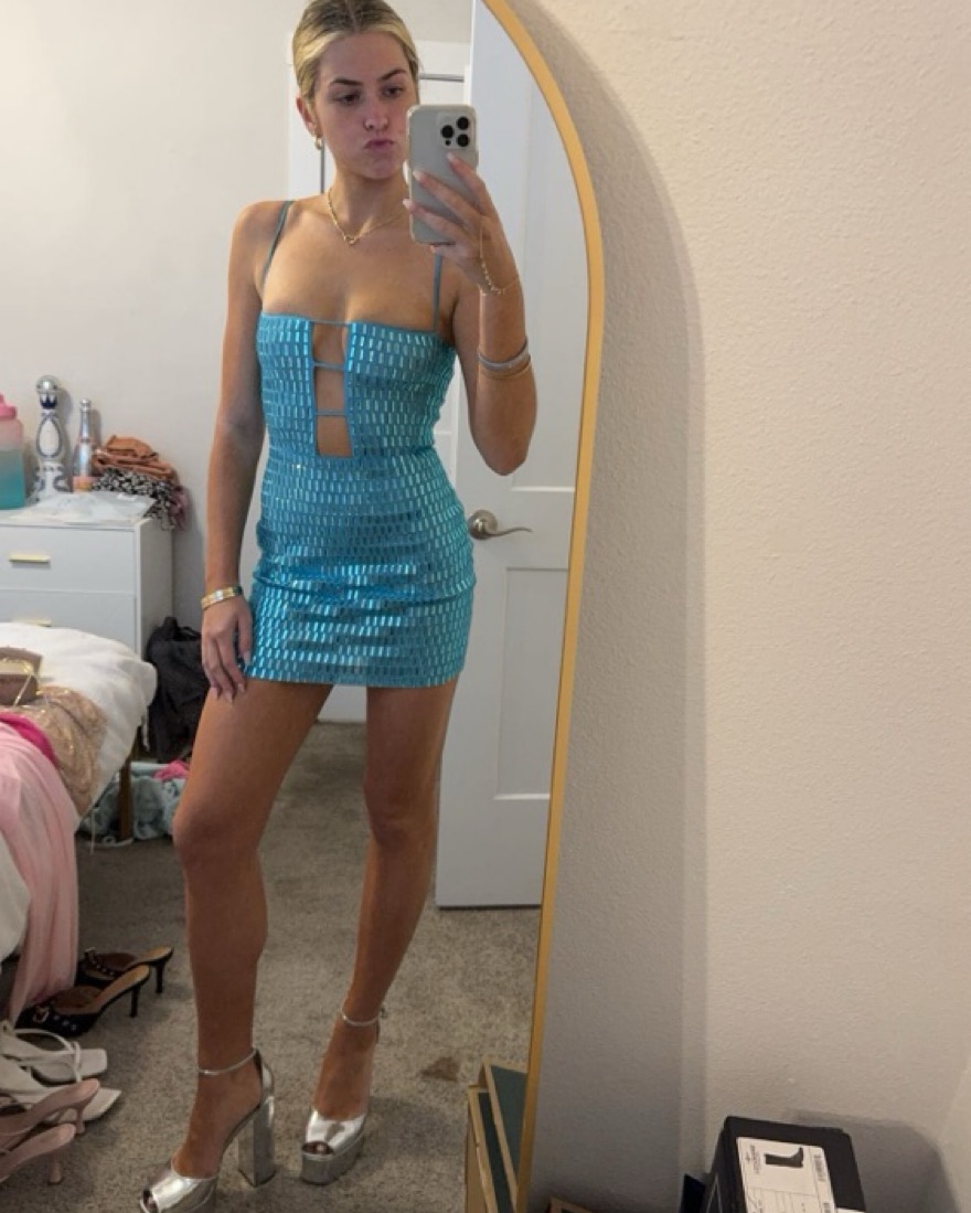 Blue Embellished Mini Dress