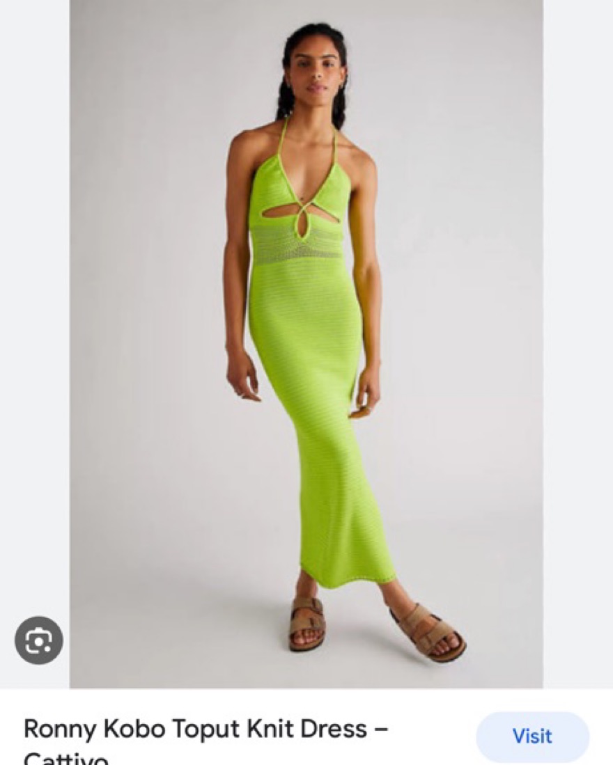 Insane green/yellow knit chrochet ronny Kobo long dress. Pictrues do not do this piece justice! Fits like a glove, thick insane quality