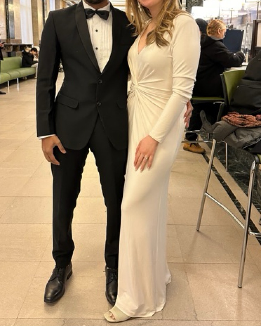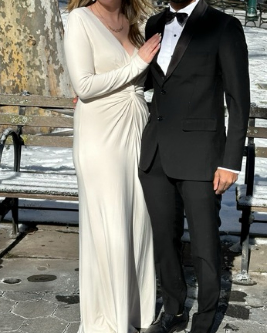 Such a pretty white strech maxi dress from Lauren Ralph Lauren. Perfect city hall or engagement party dress! So form fitting and flattering