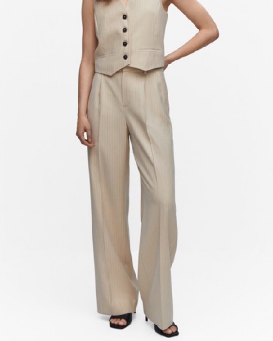 Mango Beige Pinstripe Trousers by Mango - Pickle