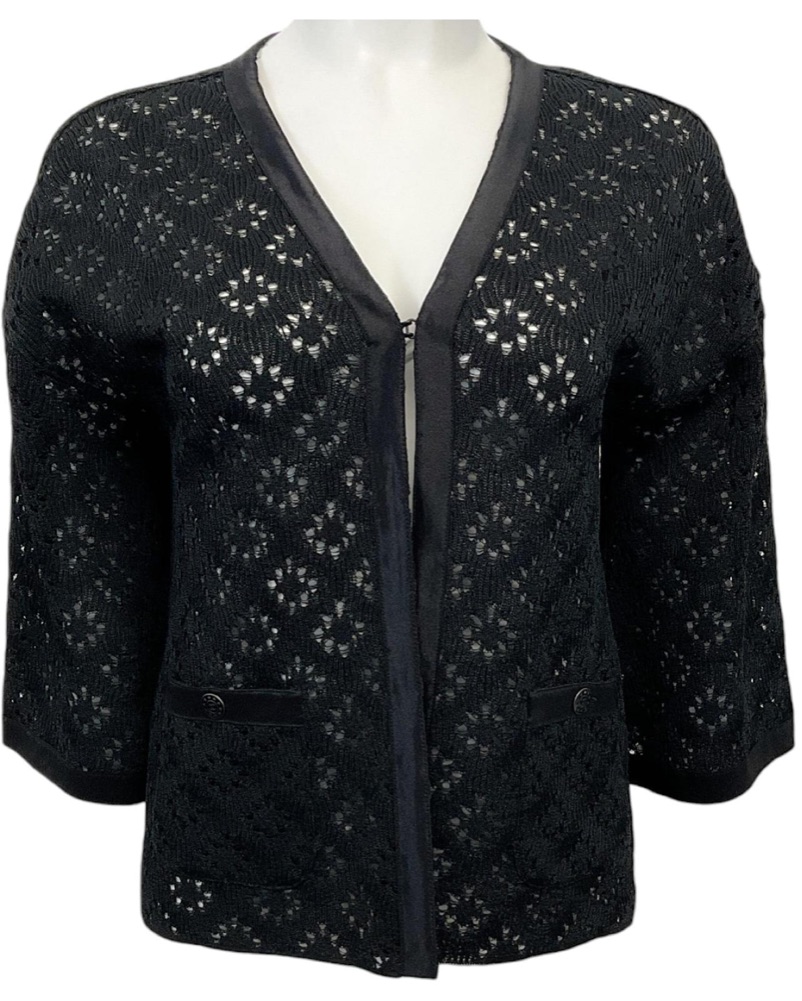 Chanel Black Open Knit Cardigan | 34