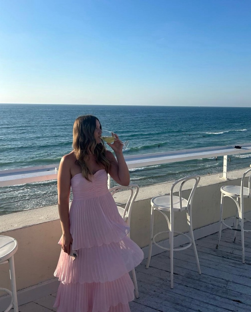 Pink tiered gown perfect for a bridesmaids dress or wedding guest