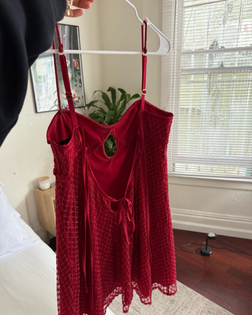 For love and lemons red glitter slip dress
