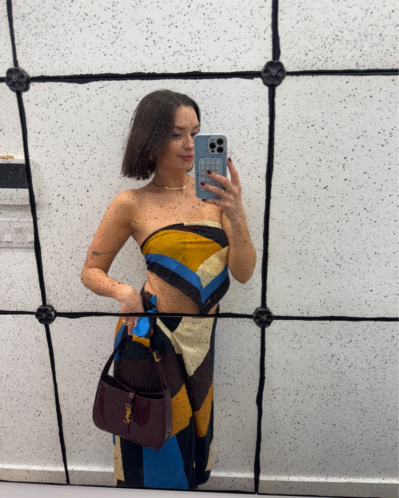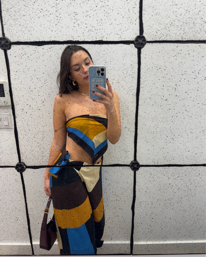 Super cute scarf top and wrap skirt. Can be worn together or separately. I have small boobs so I wore it as a top!