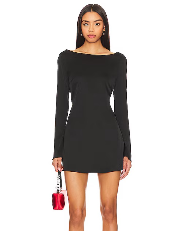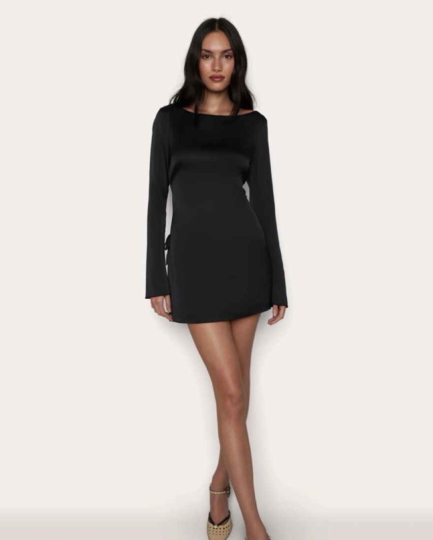 Black Satin Long Sleeve Mini Dress