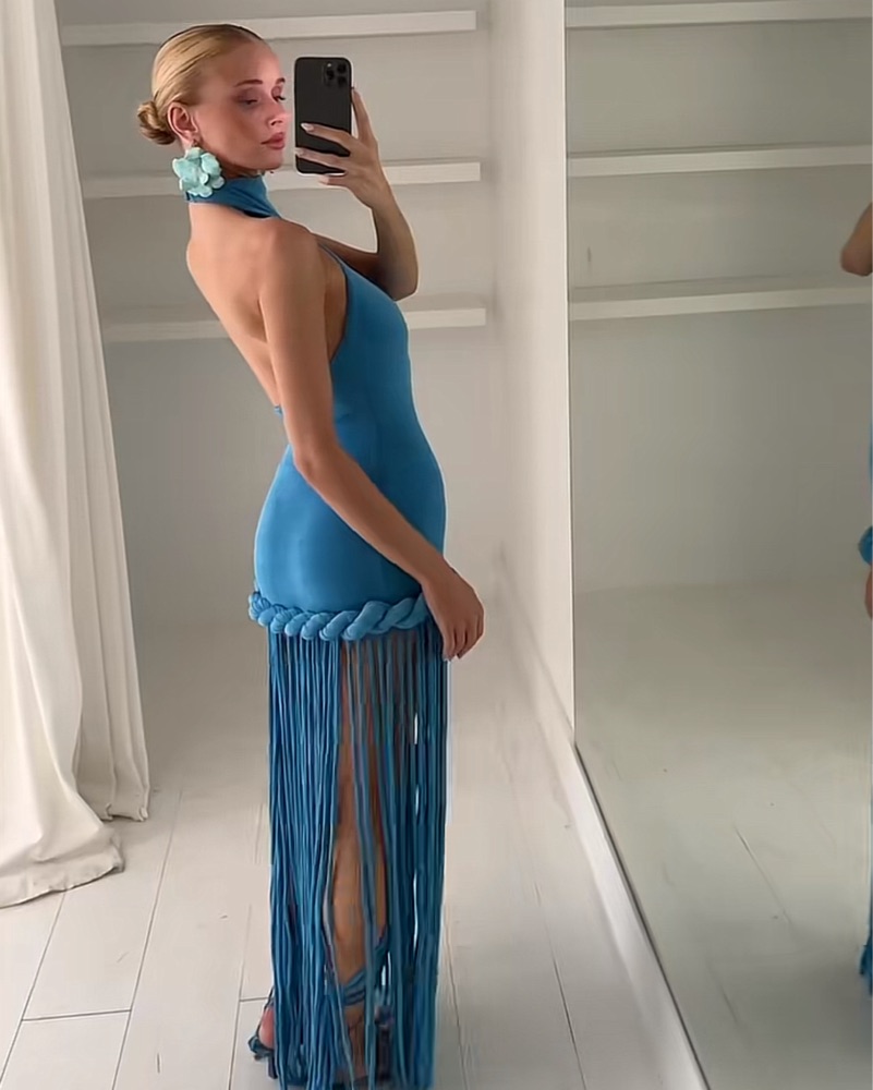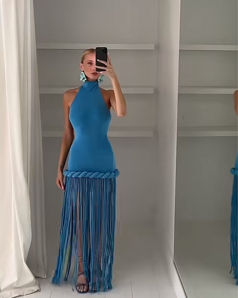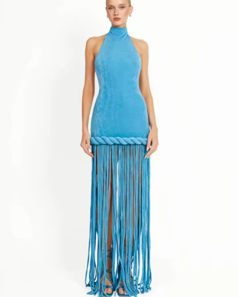 Blue Fringe Wedding Guest Dress
