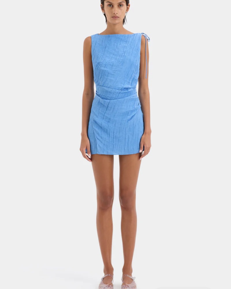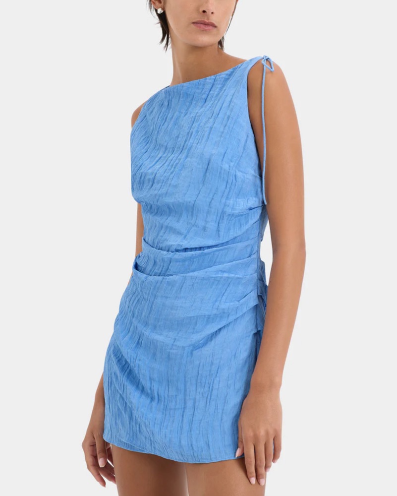 Sir the Label Ligera Mini Dress in Cornflower - made with lightweight crinkle satin. Fun summer dress for going out. RRP $390 USD