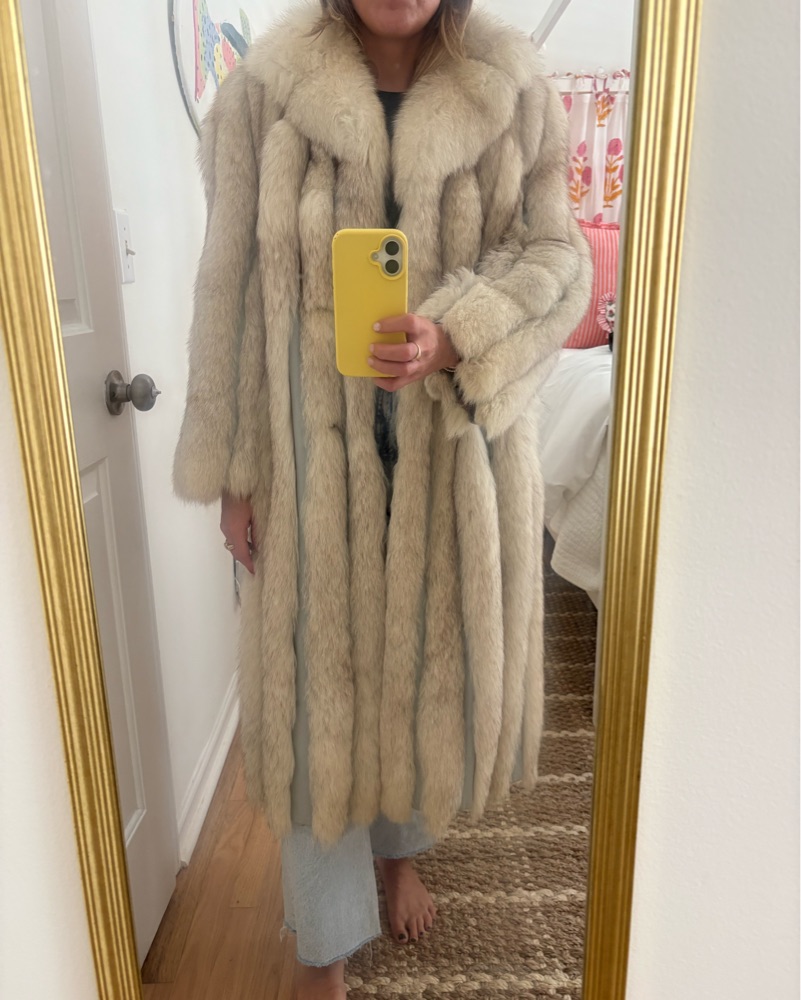 INSANE vintage fur coat. Would be great for a ski trip or over a long dress for an event. The tag doesn’t show sizing, I’m typically a small and this is a bit oversized. I’d call it a medium or US 8? But looks great even on a smaller frame.