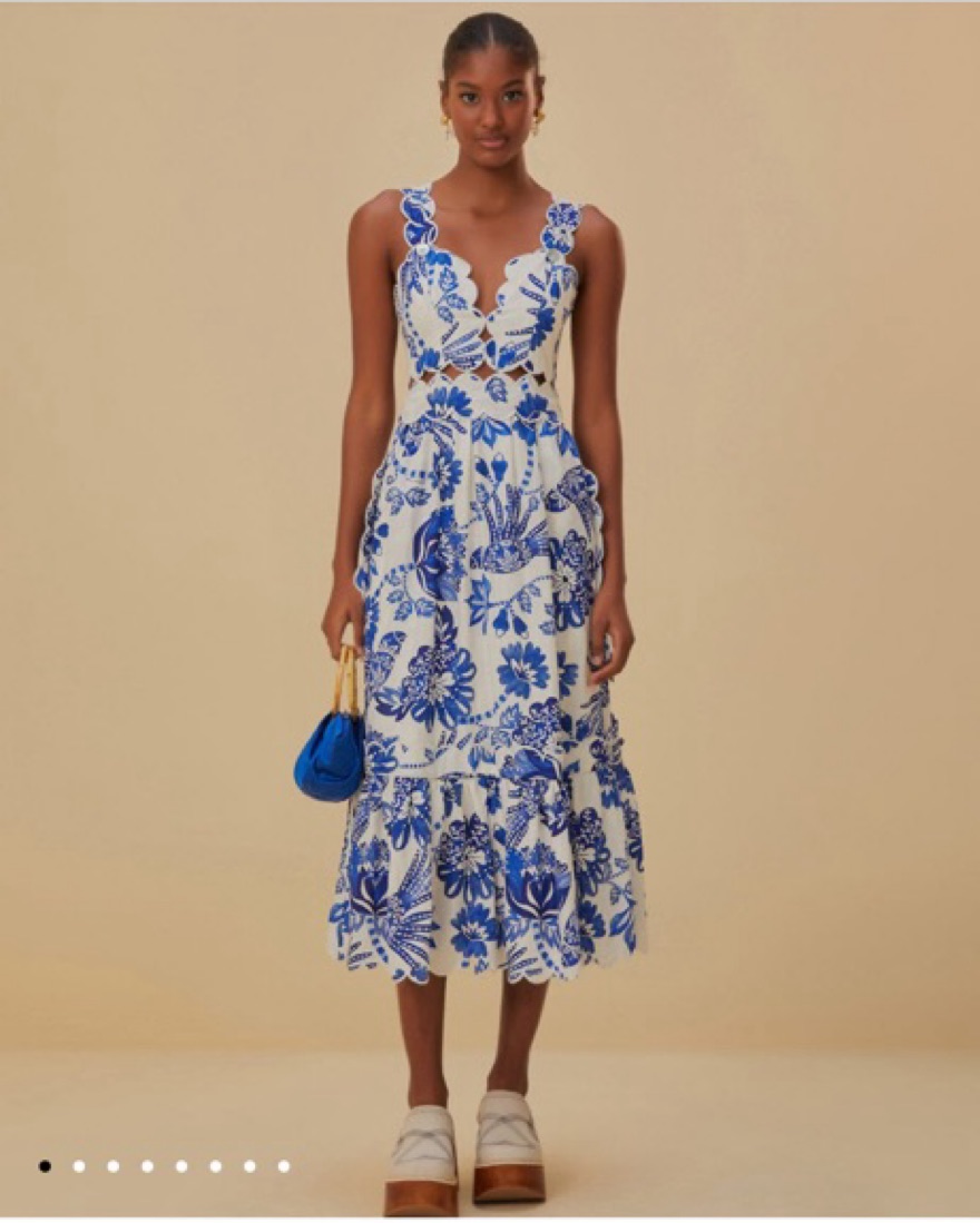 Farm Rio Blue White Maxi Dress