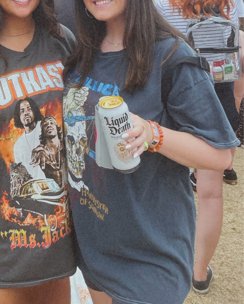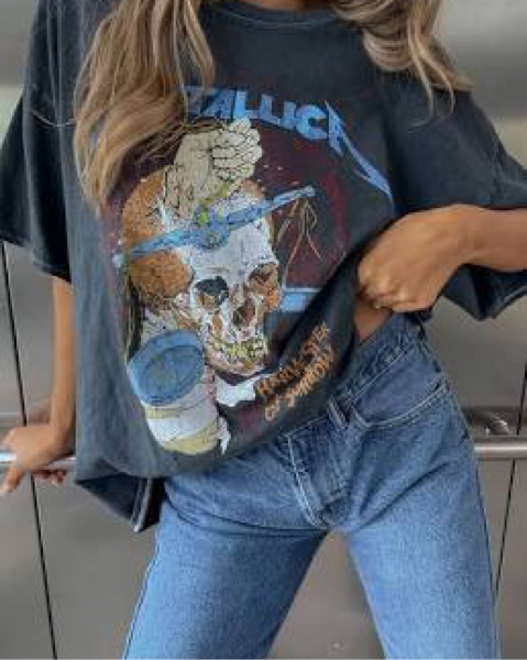 This Metallica graphic tee creates a casual yet edgy look perfect for a concert or hanging out with friends.