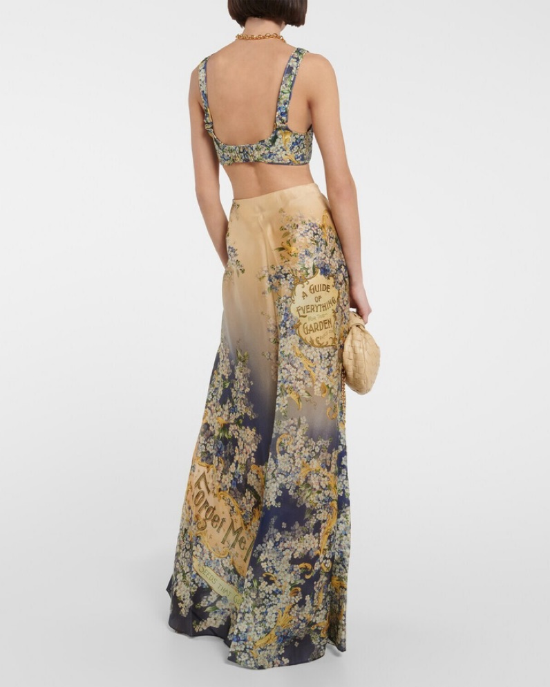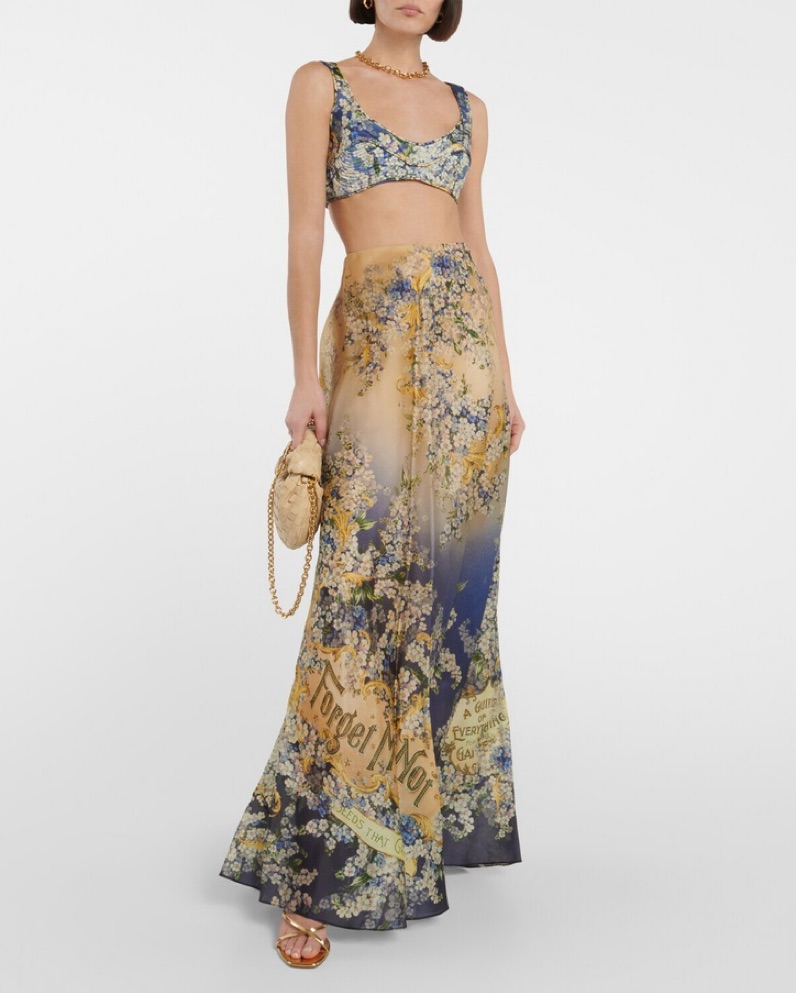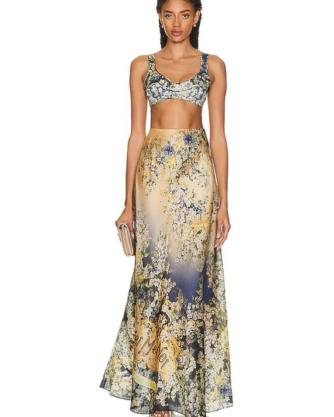 Zimmermann Spring 2021 - Flora Print High Waist Skirt and Tama bralette. Forget Me Not floral print. Sold separately but listed as retail price together. Skirt $1150 top $495. Both size 1 (U.S. 4-6). Top can suit up to 34DD but a bit tight. I’m a true size 4 and the skirt is a little big on me.